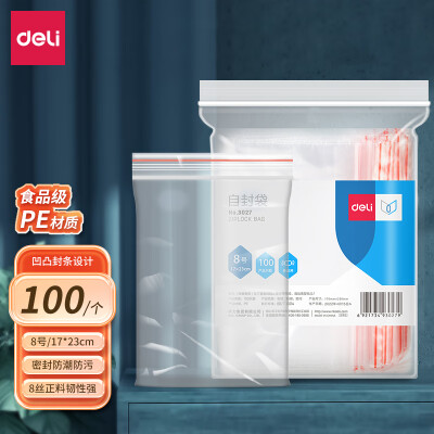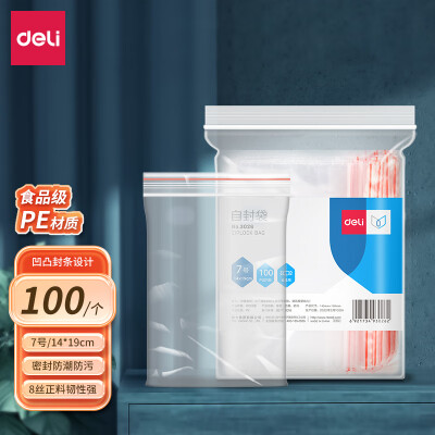 3208 得力(deli)食品密封袋7號20*14cm 加厚防水PE透明收納防塵 (100只透明/包) 3026 QL003208 ¥12.9 加入詢價(jià)