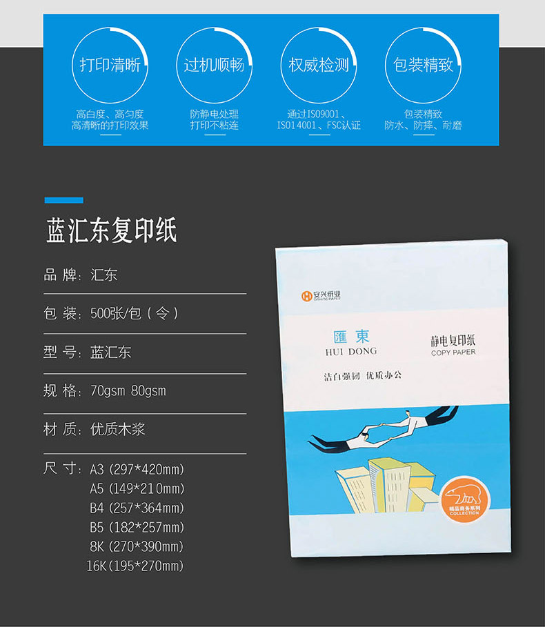 產(chǎn)品名稱 藍(lán)匯東復(fù)印紙 70G B5 500S 10包/箱 貨號 ql000202