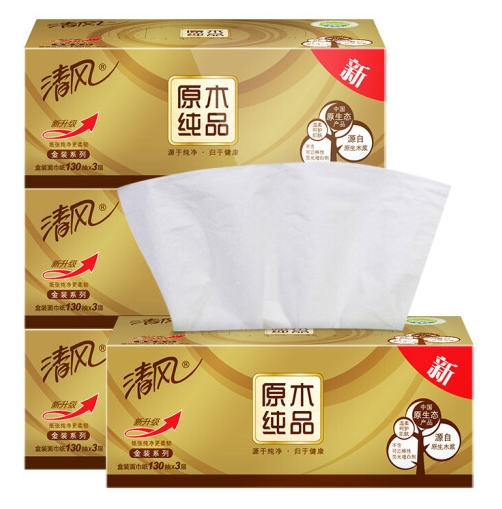 清風B335J/B335J1三層原木純品金裝盒裝面紙-130抽
