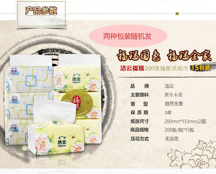 商用-潔云136108國色塑包面紙-200抽(小幅)