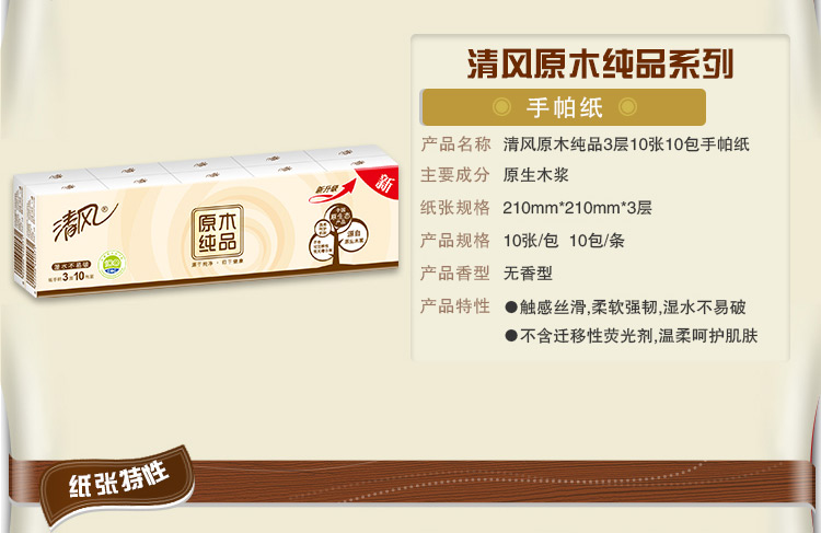 產(chǎn)品名稱 清風(fēng)B66AC1/B66AC1M原木純品手帕紙-3層 貨號 QL001165