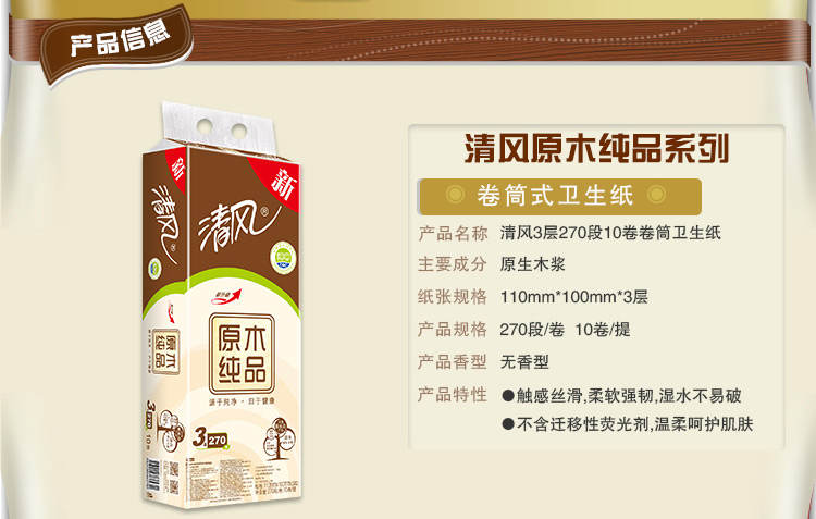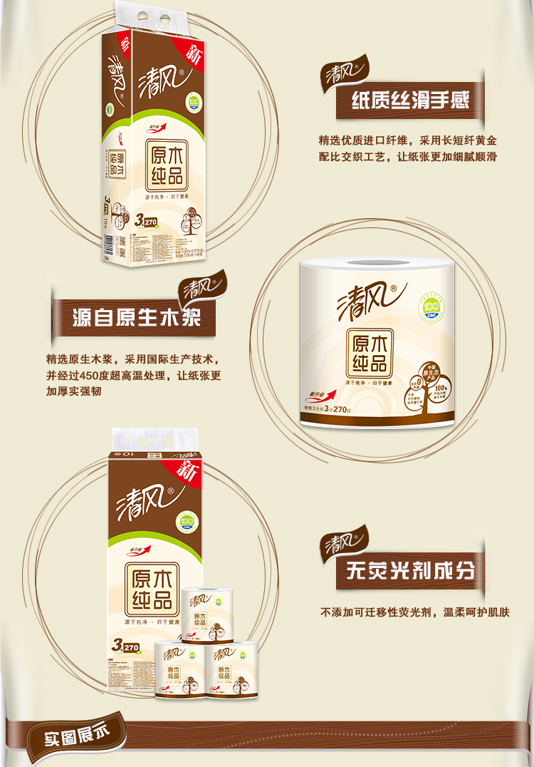 清風B20C4C1三層原木純品卷筒衛(wèi)生紙-140克