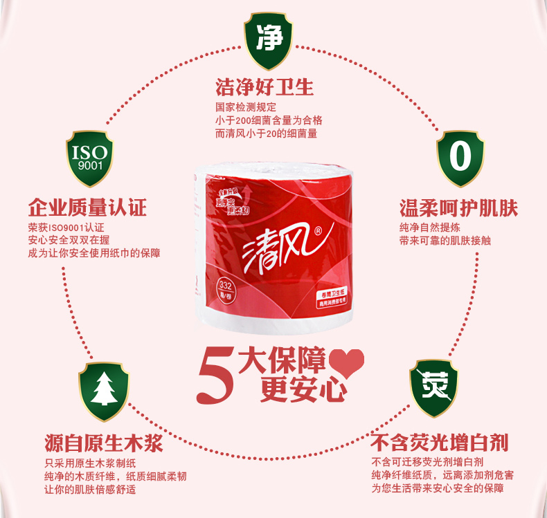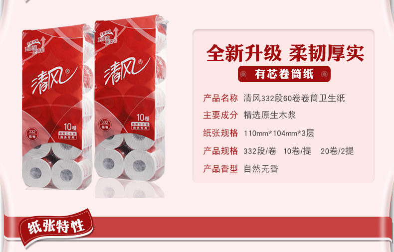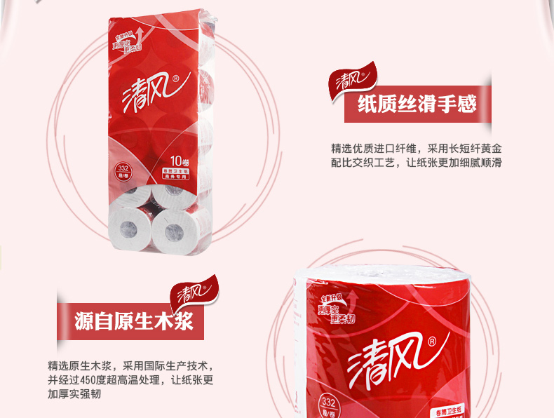 清風(fēng)B20AA8三層平紋卷筒衛(wèi)生紙-332段