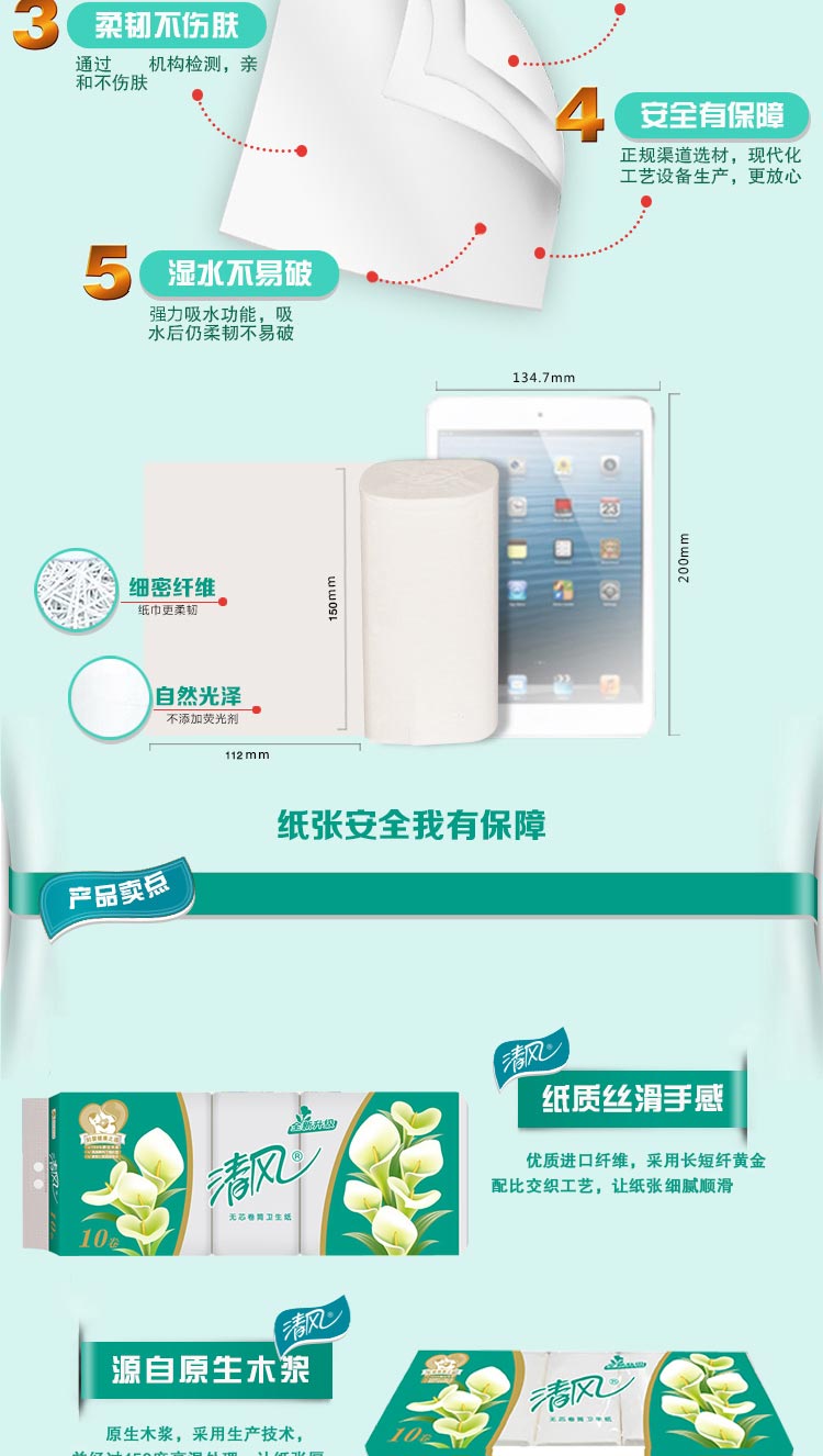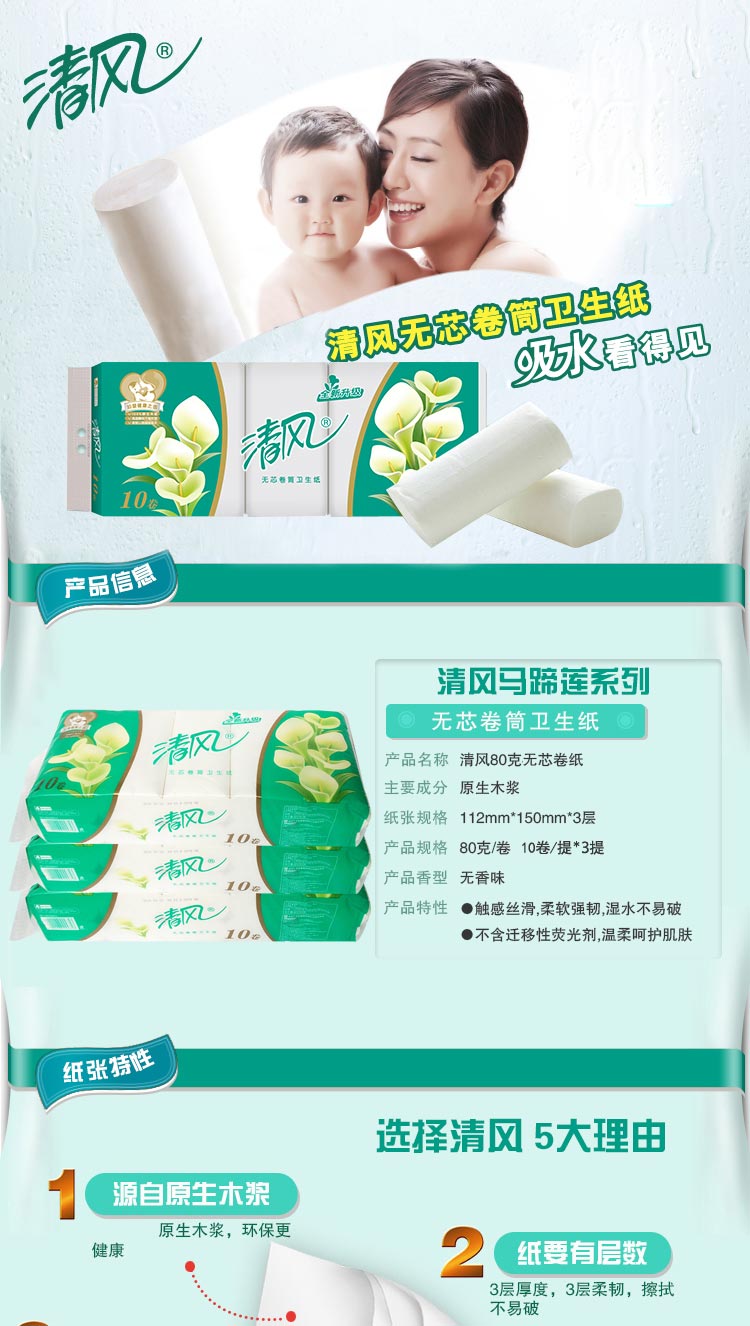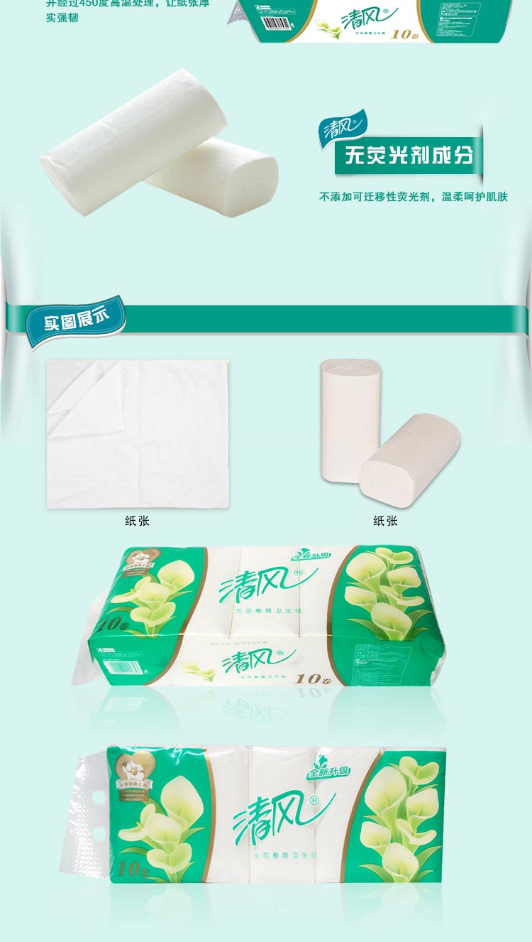 清風(fēng)B01B三層平紋長卷無芯卷紙-100克