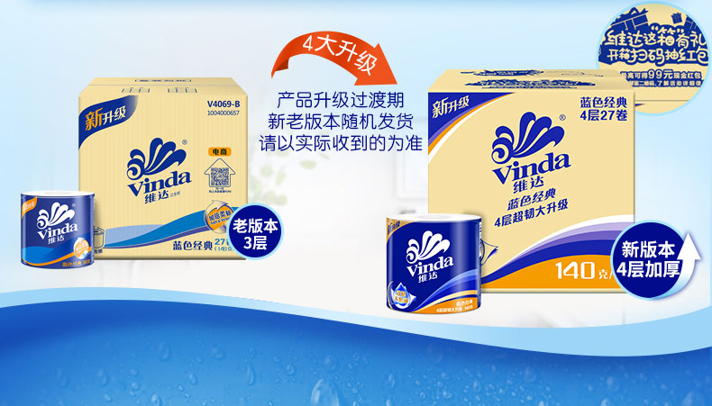 維達(dá)V4073-B藍(lán)色經(jīng)典卷筒衛(wèi)生紙-200克