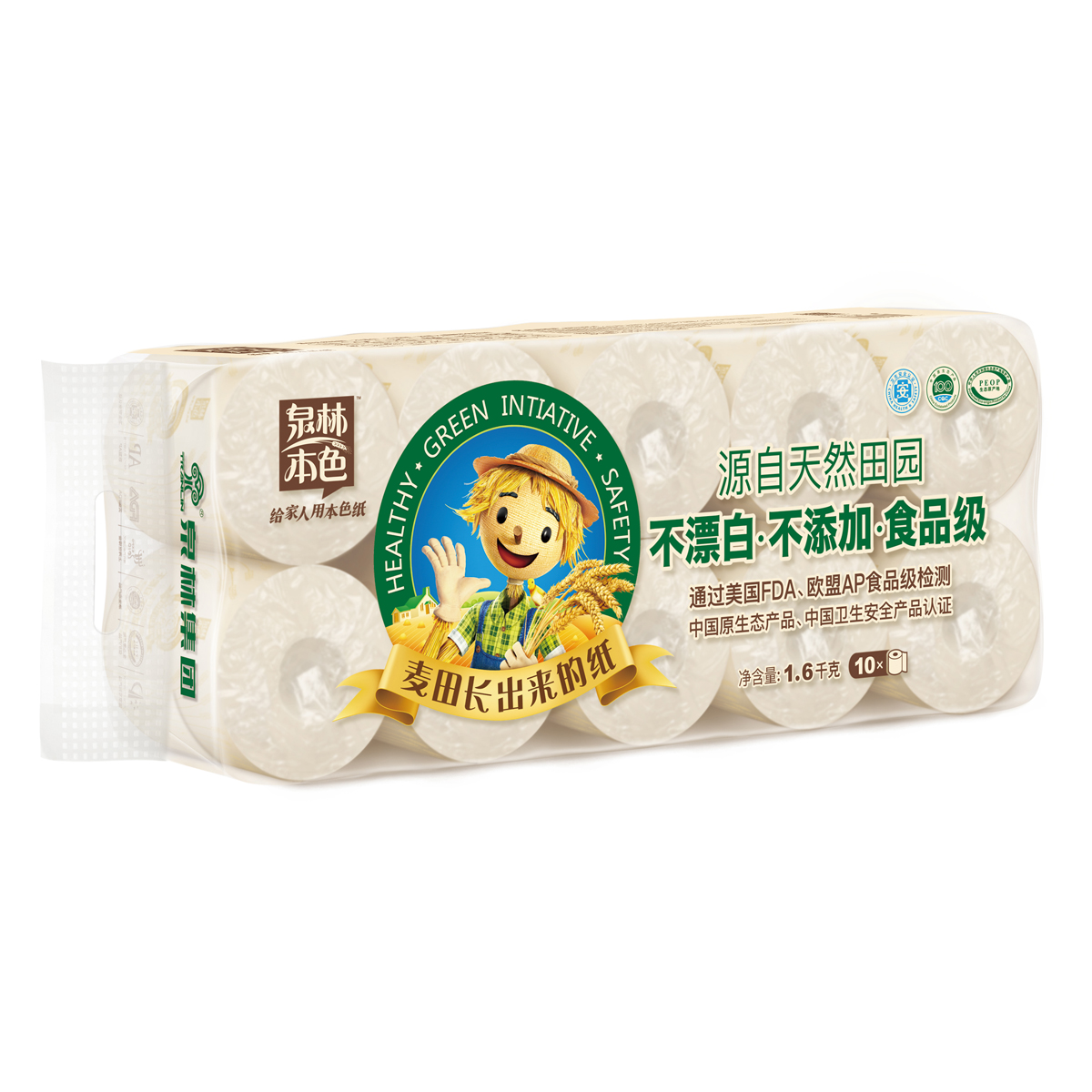 產(chǎn)品名稱 民用-泉林本色BK160百草舒10粒裝卷筒衛(wèi)生紙-160g 105*110mm,3層,160g 貨號 QL001236