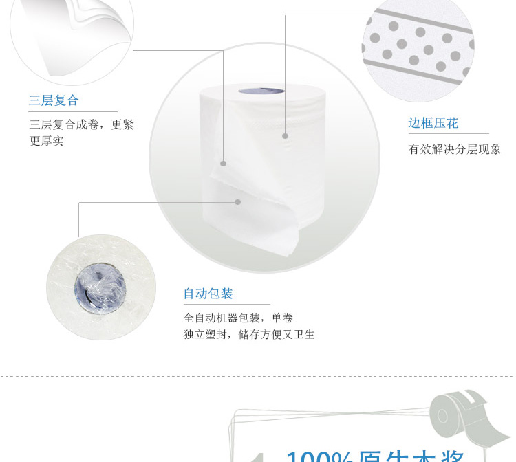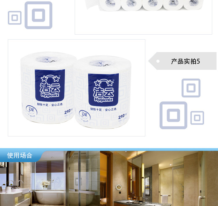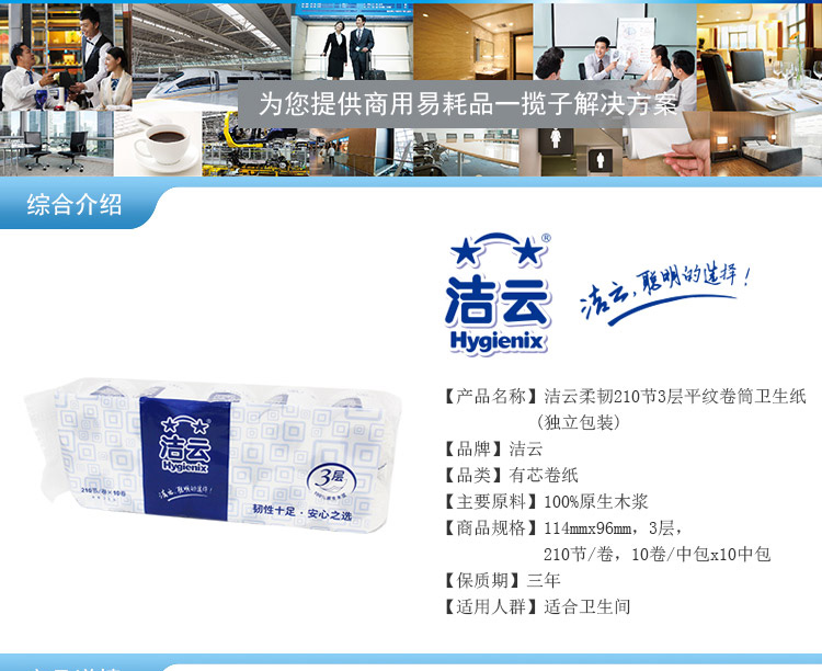 產(chǎn)品名稱 商用-潔云116614柔平紋韌卷筒衛(wèi)生紙-210節(jié),114*96mm,3層,210節(jié) 貨號 QL001246