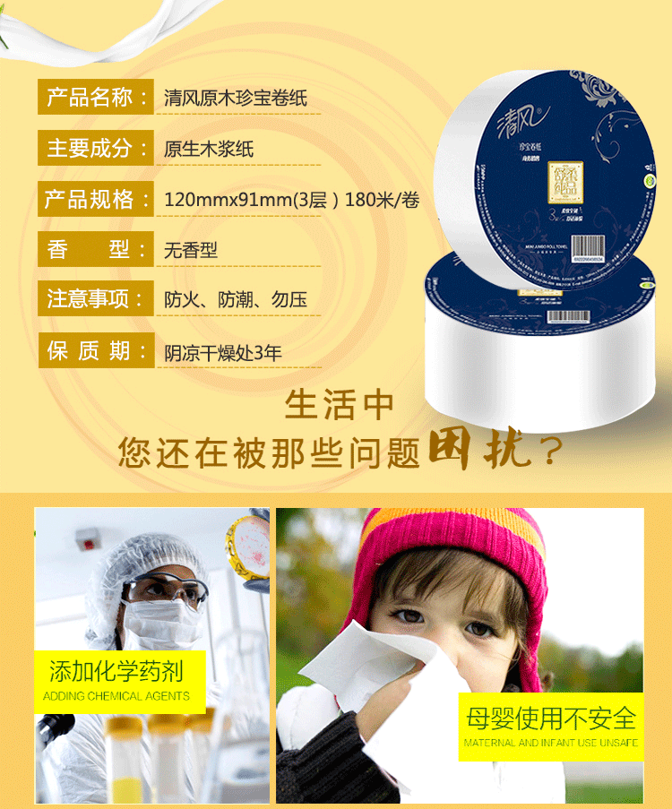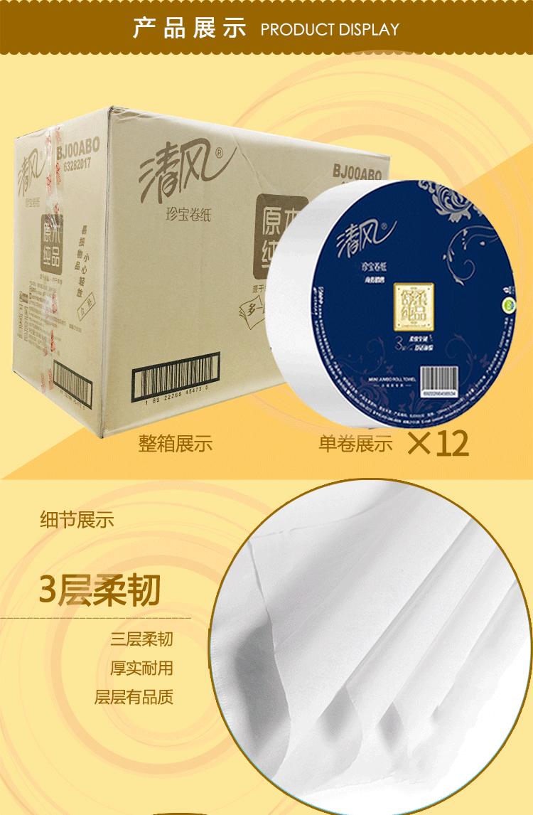 清風BJ00AB三層平紋珍寶大卷紙-180米