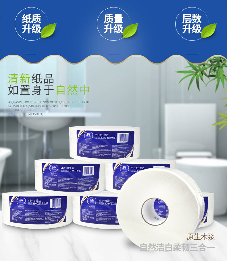 首頁(yè) > 生活用紙 > 生活用紙 > 大卷紙 > 維達(dá)VS4491三層壓花大卷紙-805克 95*112mm,三層