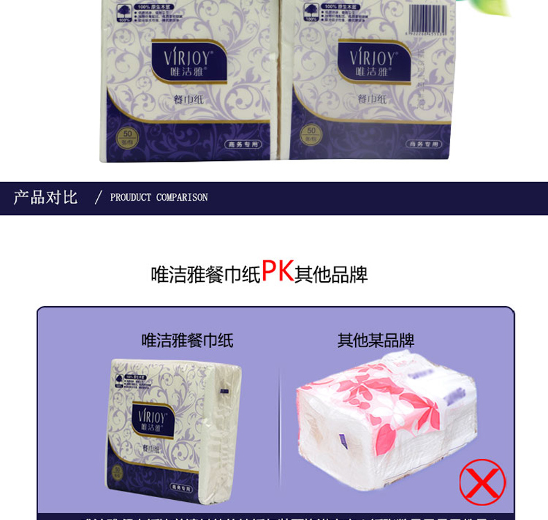 產(chǎn)品名稱 商用-唯潔雅E700A雙層餐巾紙-50張 貨號(hào) QL001298