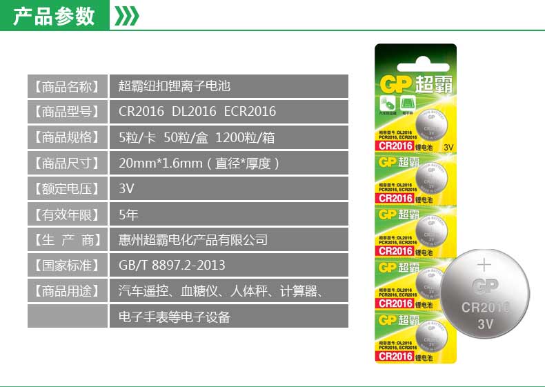 產(chǎn)品名稱(chēng) 超霸CR2016(5B)紐扣電池 貨號(hào) QL001809