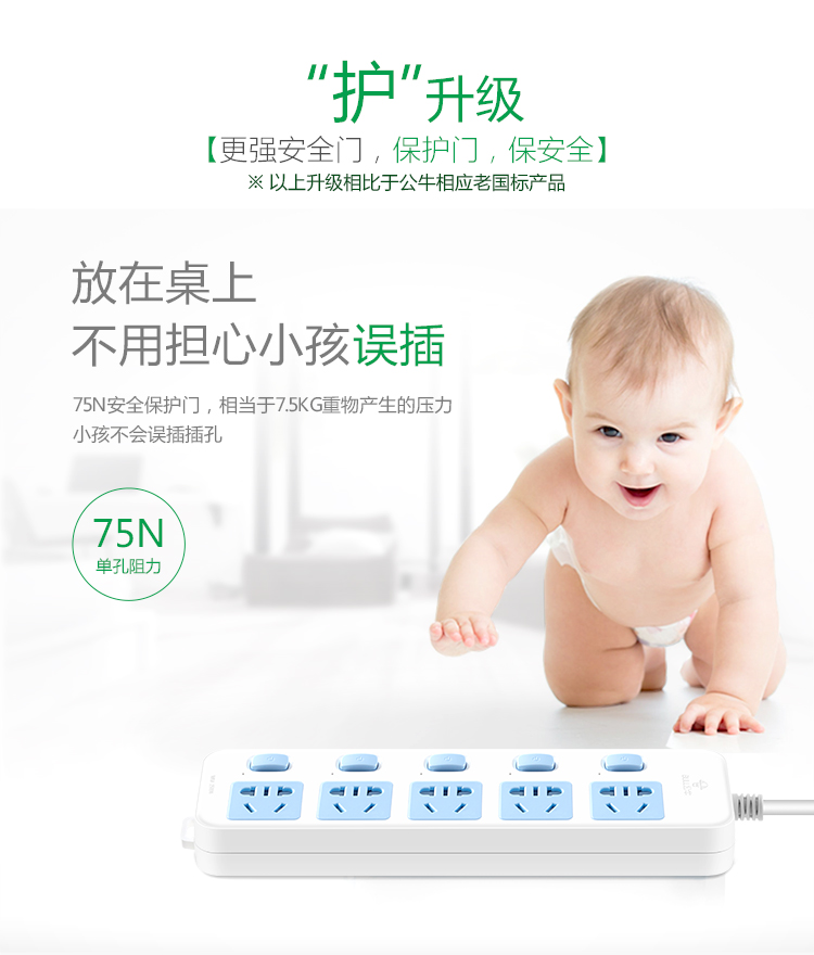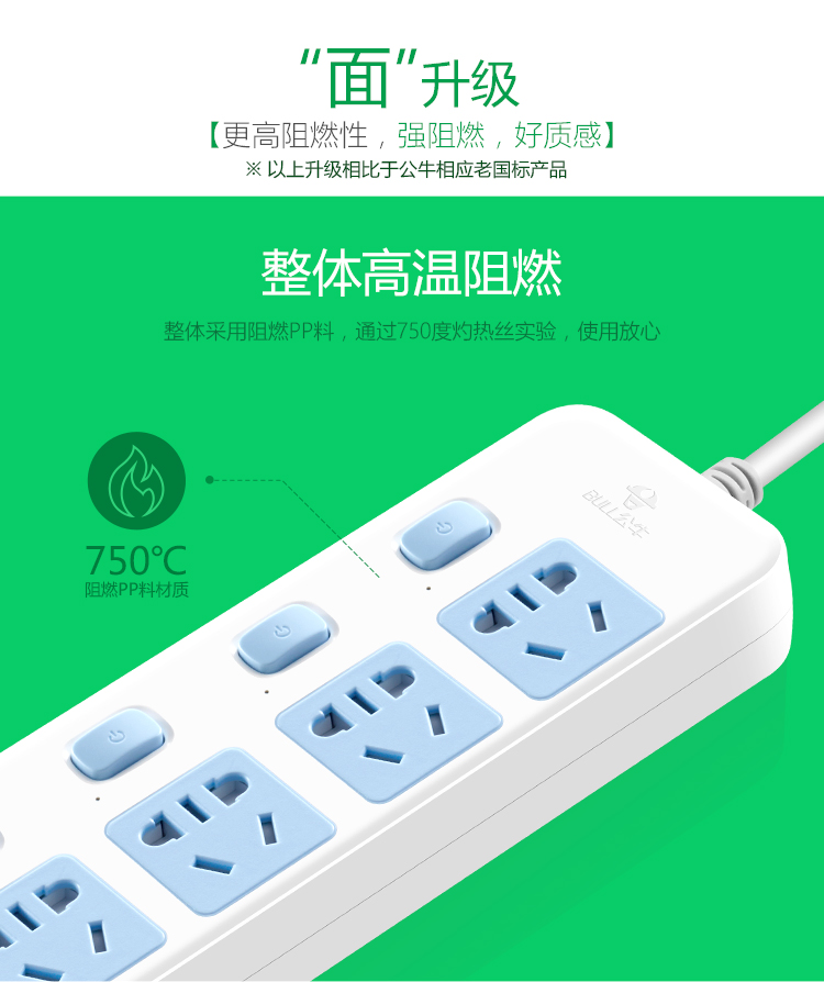公牛GN-316(藍白新國標)電源插線板 3M袋