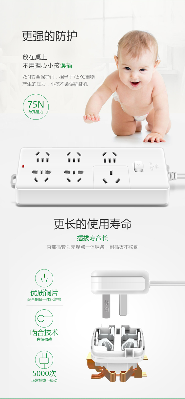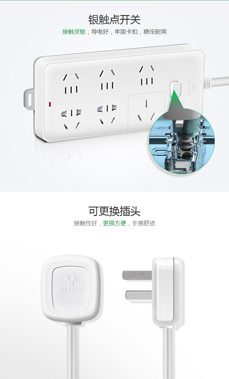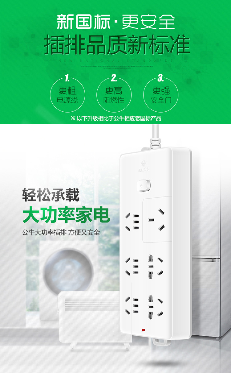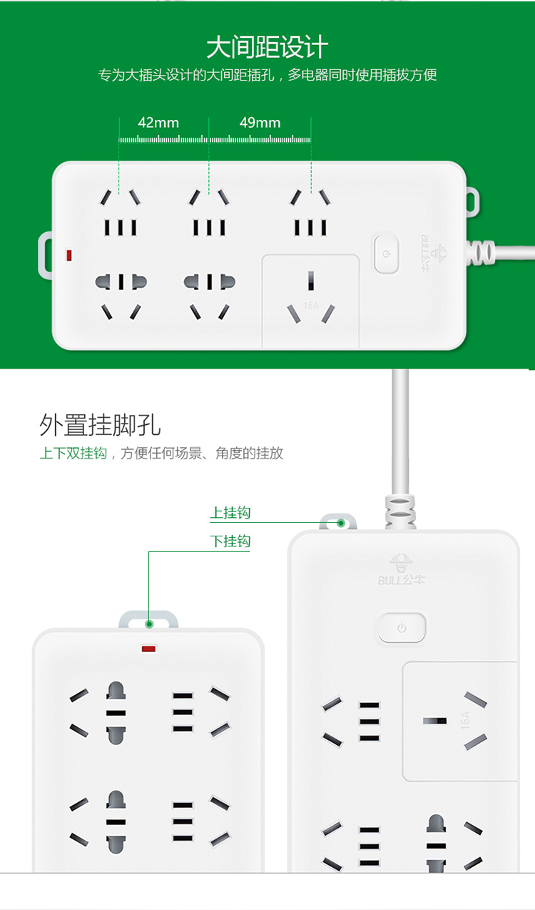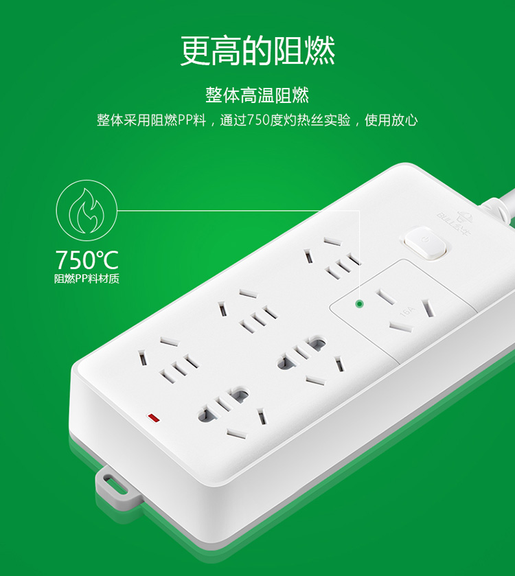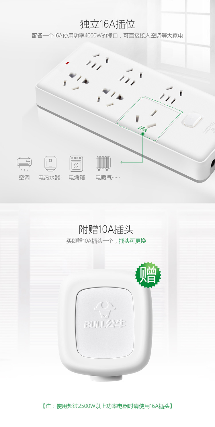 公牛GN-B15D(白色新國(guó)標(biāo))16A電源插線板 3M吸