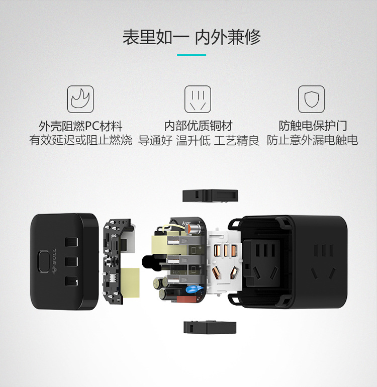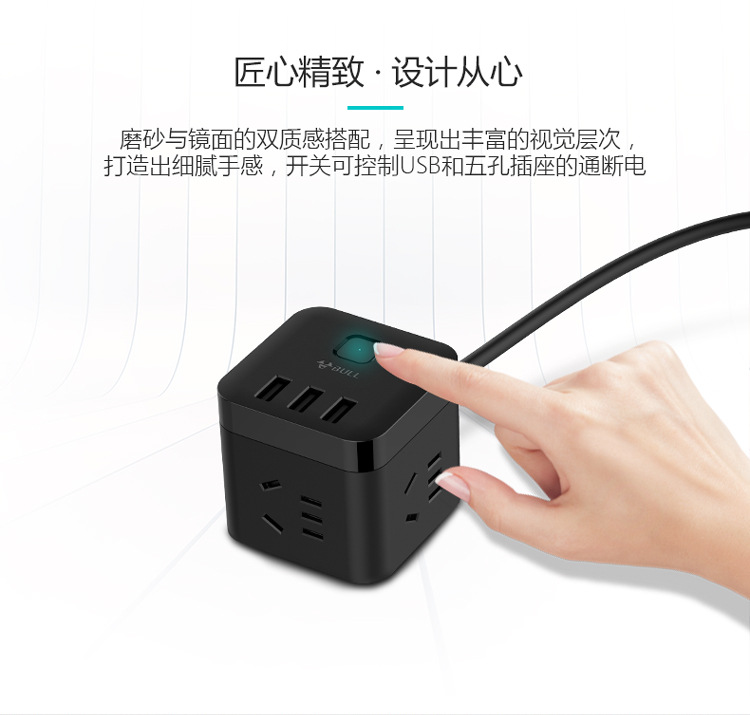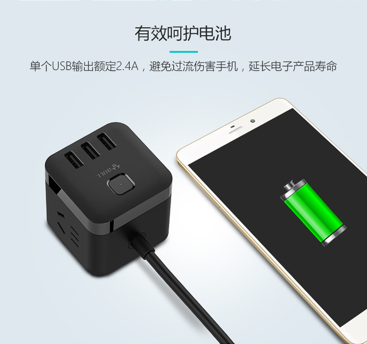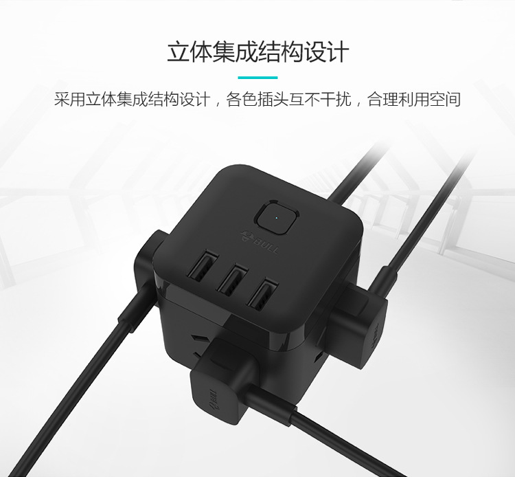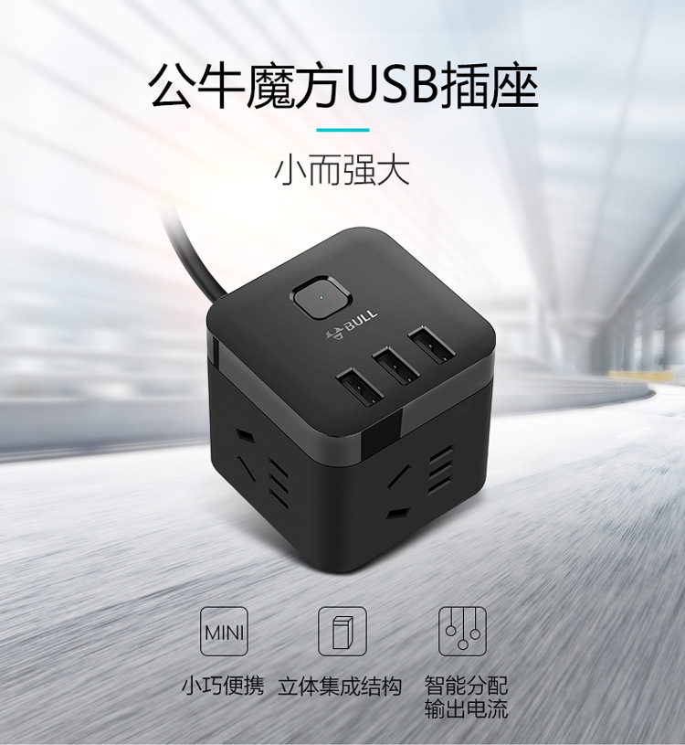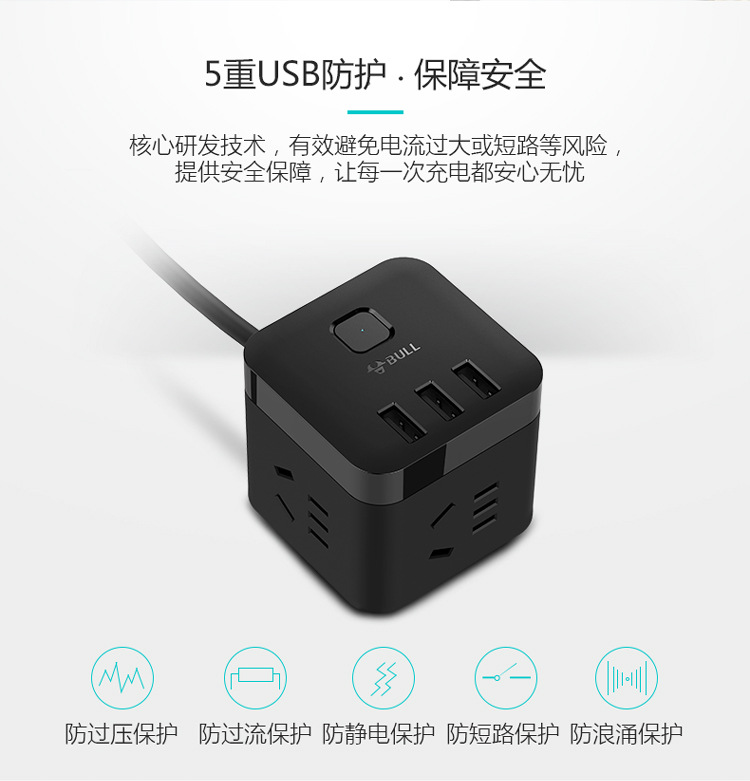 公牛GN-U303H(黑色)(新國標)電源插線板 1.5M盒