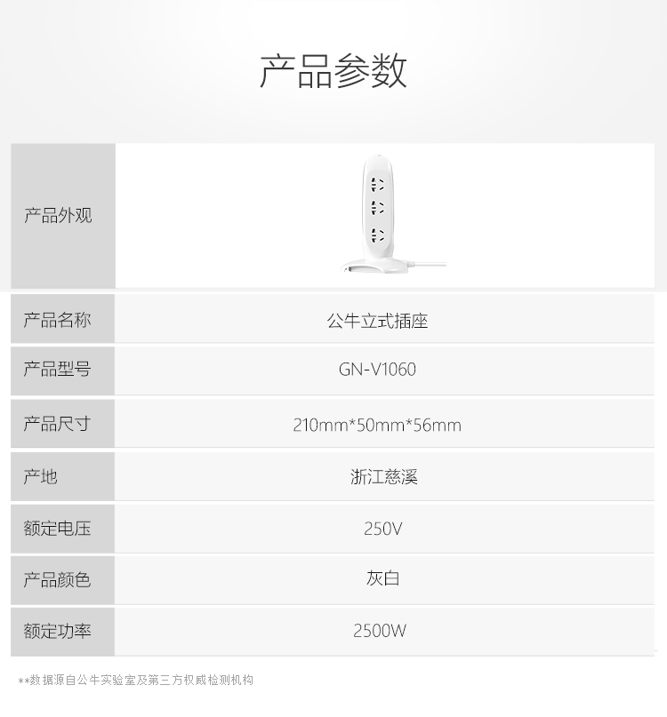 公牛GN-V1060(灰白新國標(biāo))電源插線板 1.8M吸