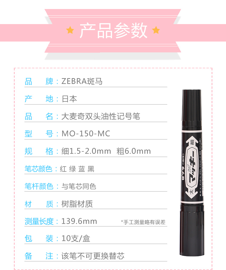 產(chǎn)品名稱 斑馬MO-150-MC(黑色)大雙頭油性記號筆 貨號 QL002101