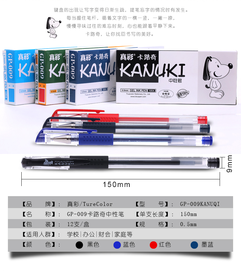 真彩(TRUECOLOR) 009卡路奇(藍)中性筆