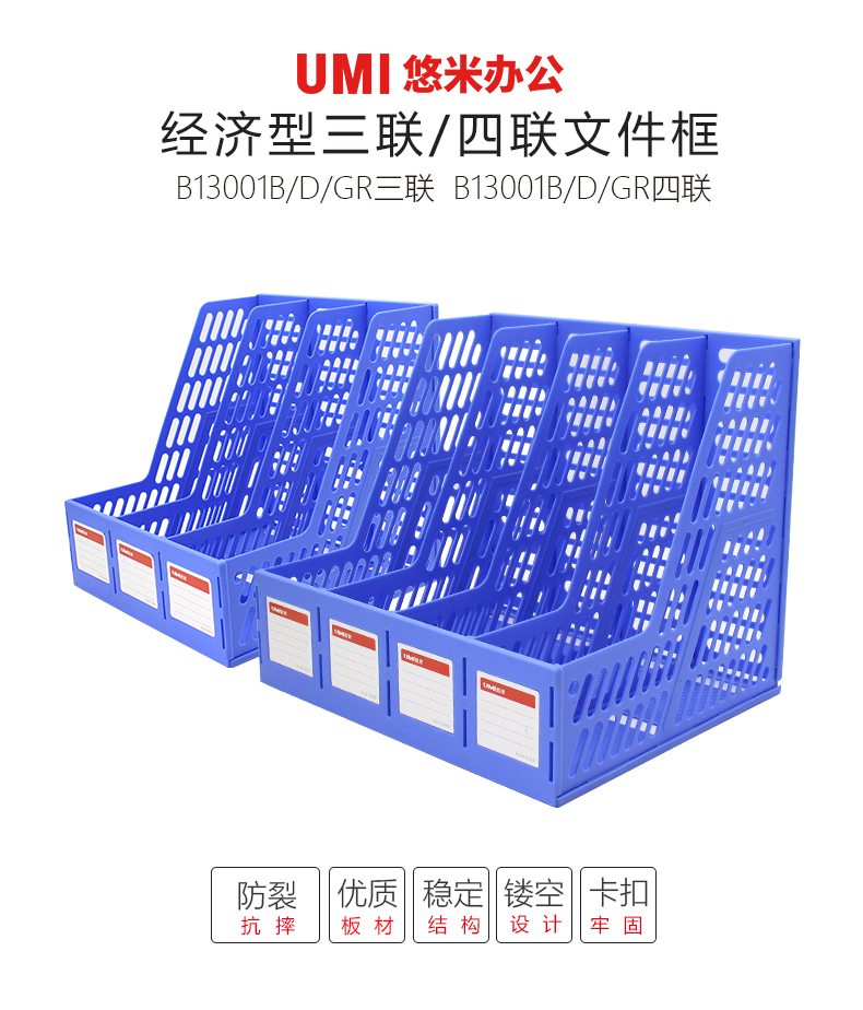 首頁(yè) > 辦公文具 > 桌面存儲(chǔ) > 文件框/籃 > 悠米(UMI)經(jīng)濟(jì)型四聯(lián)文件框 B13002GR 灰