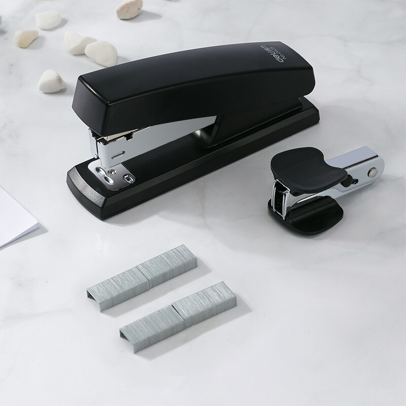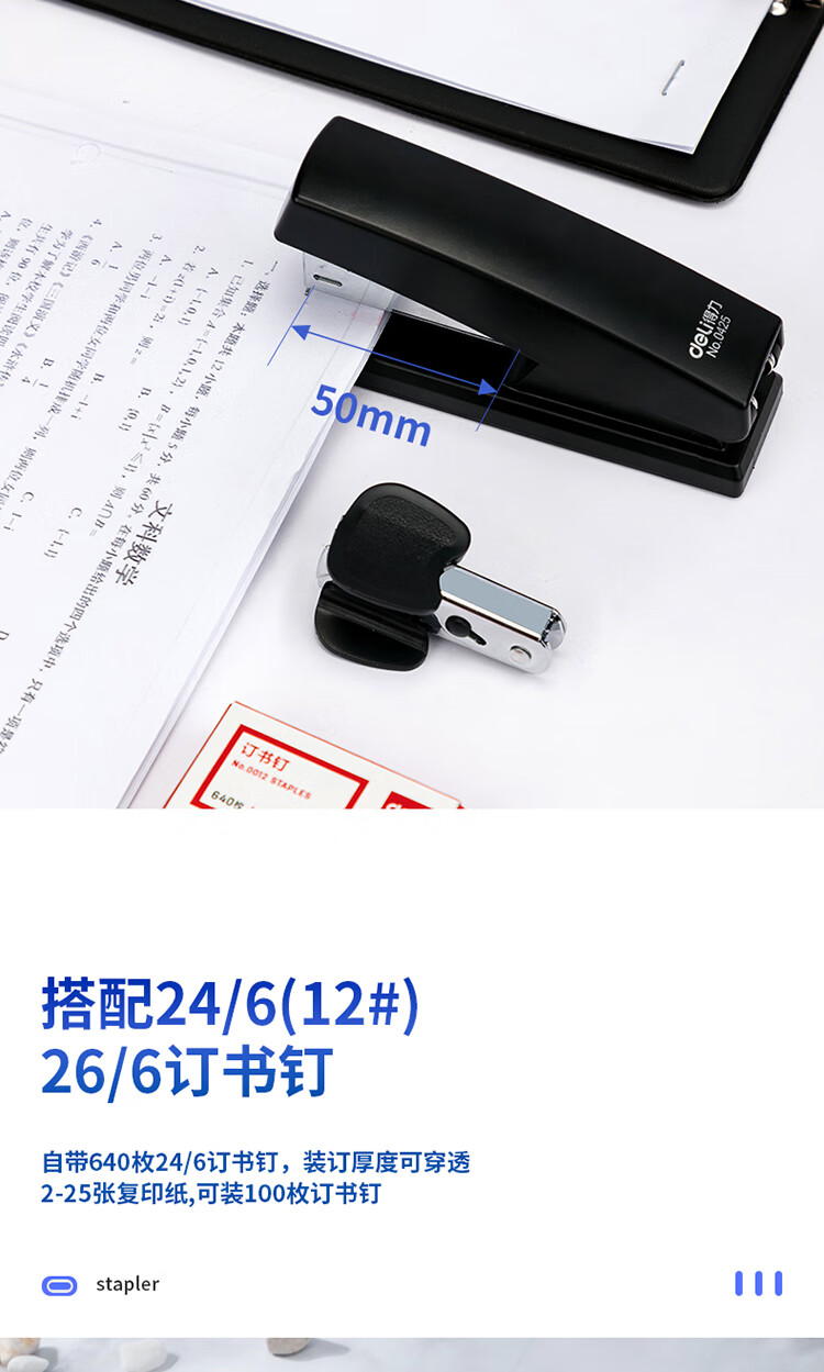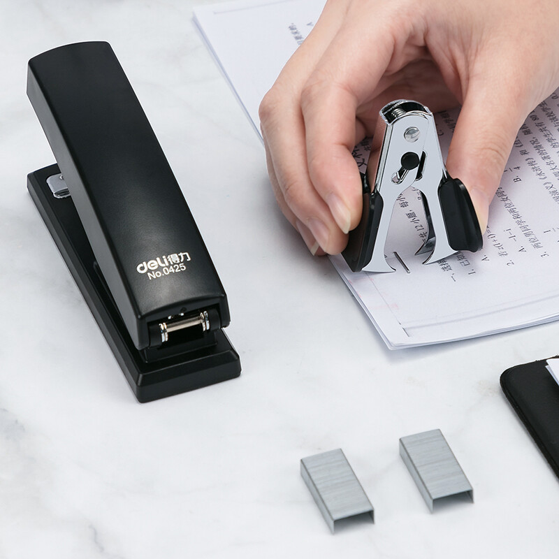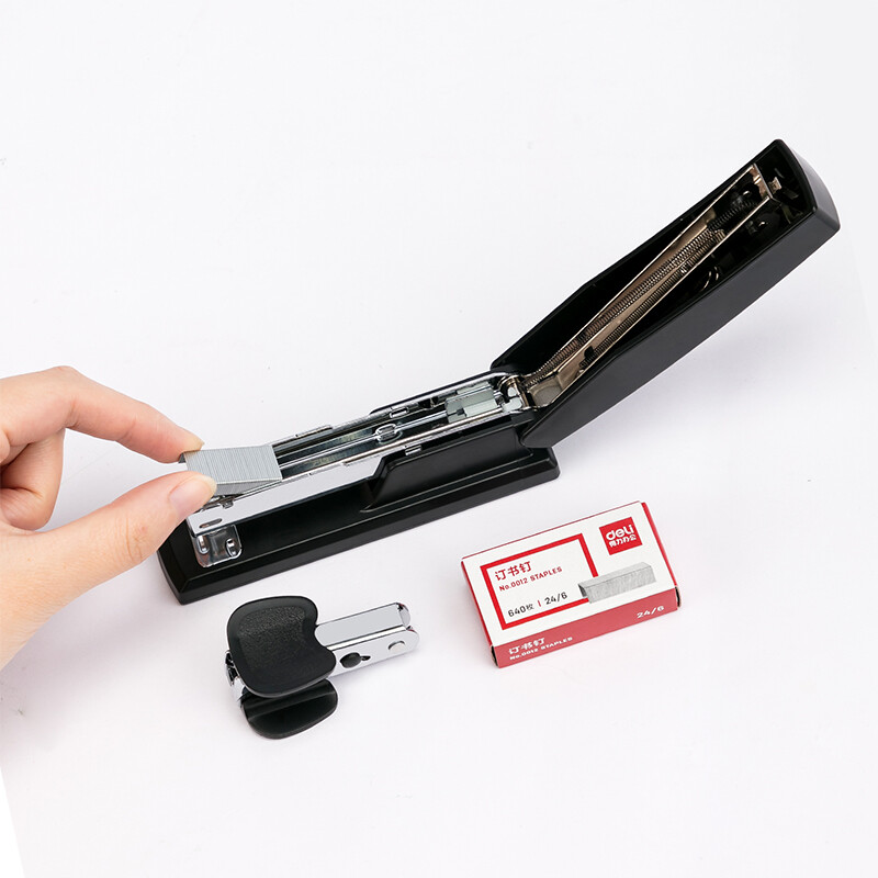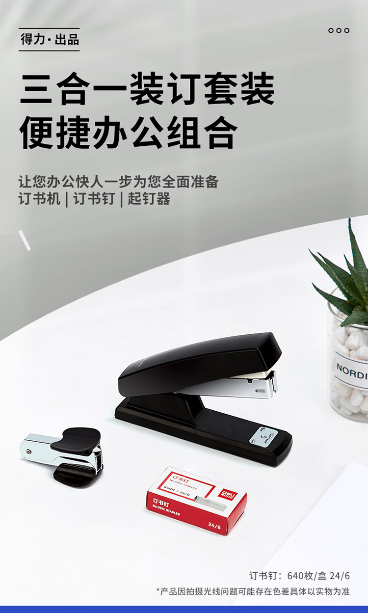 得力12#訂書機(jī)3件套0354(訂書器+訂書釘+起釘器)黑色