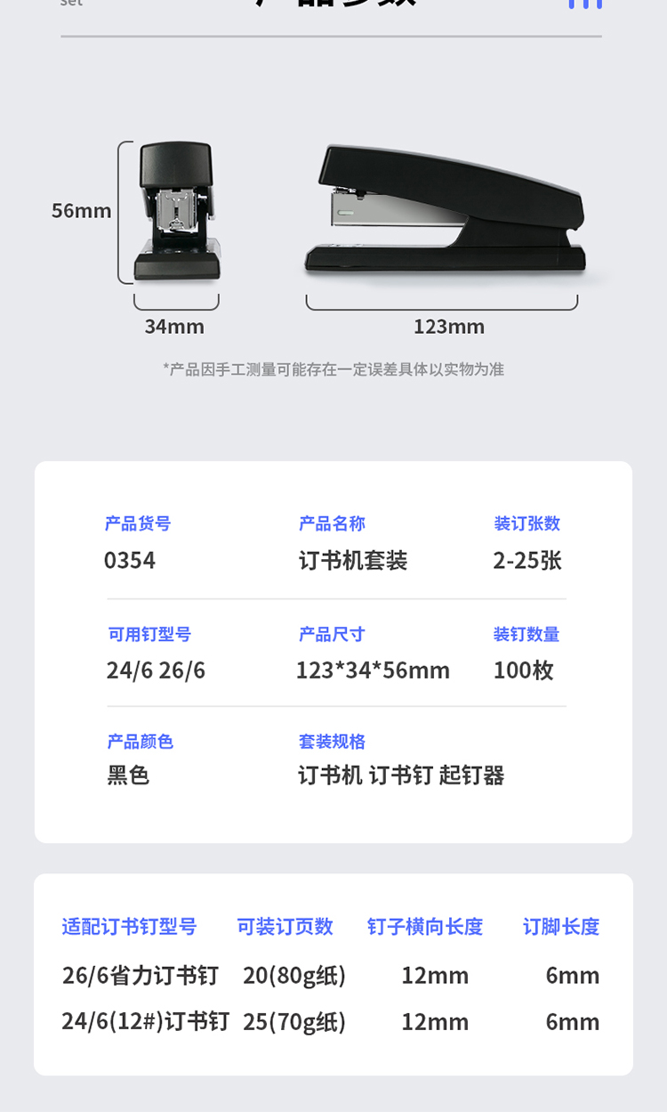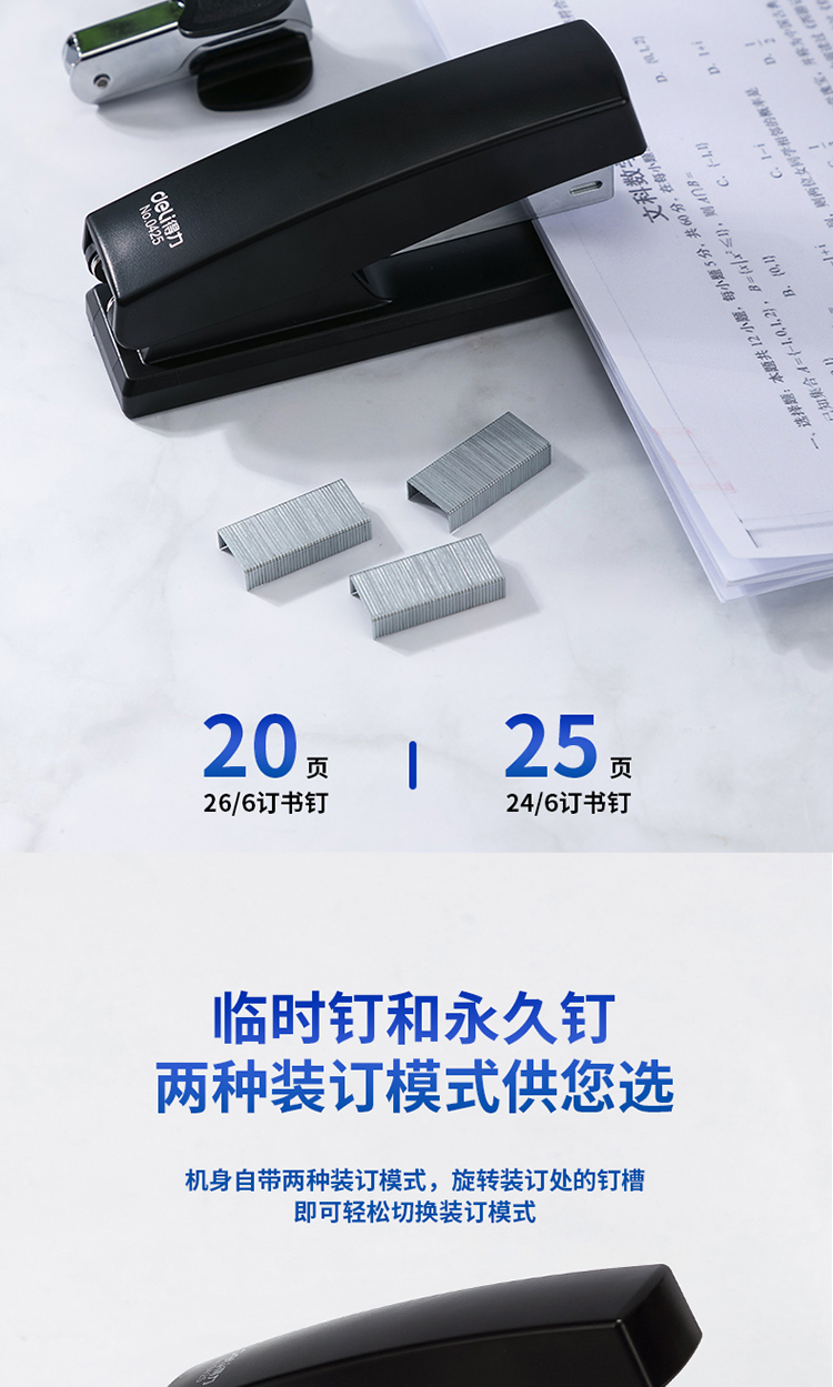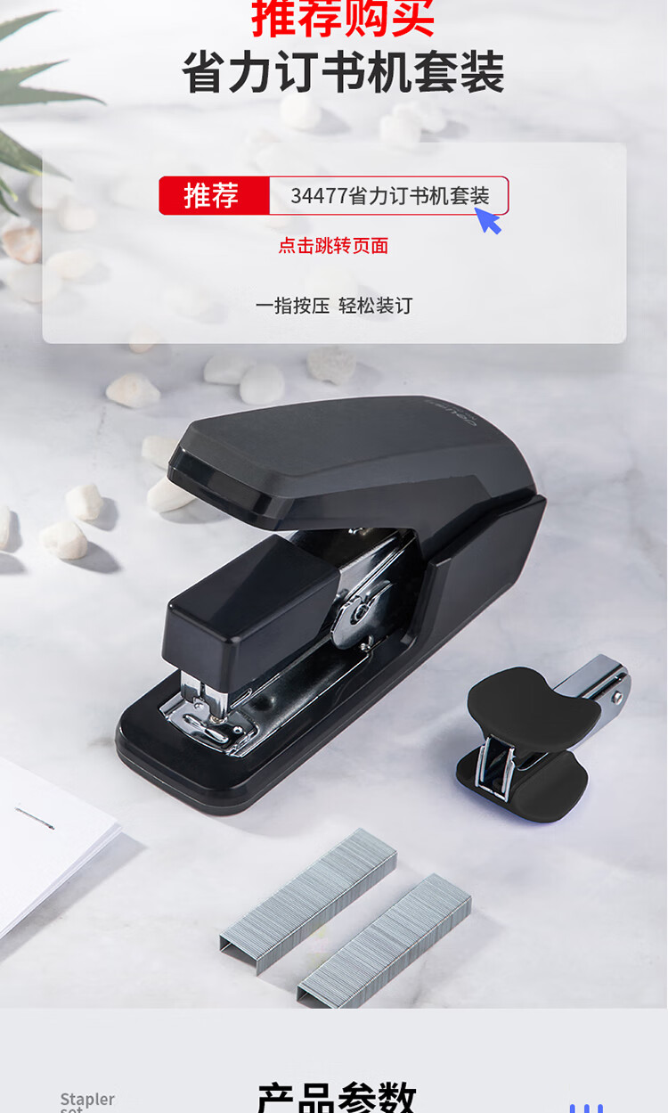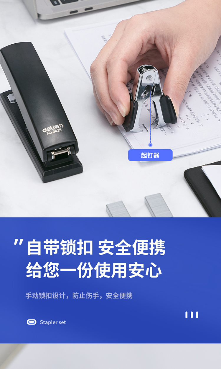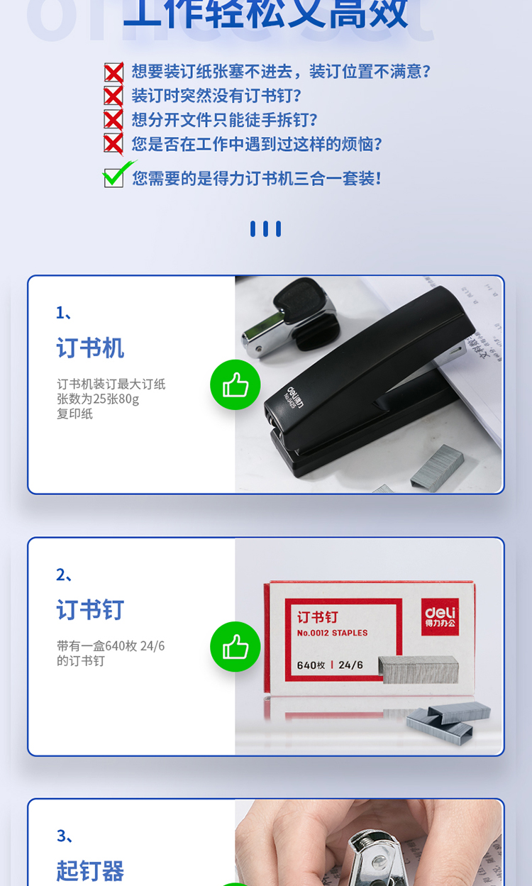 得力12#訂書機(jī)3件套0354(訂書器+訂書釘+起釘器)黑色