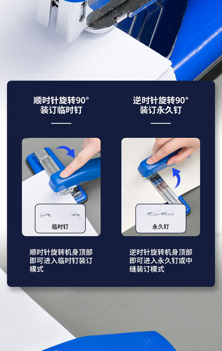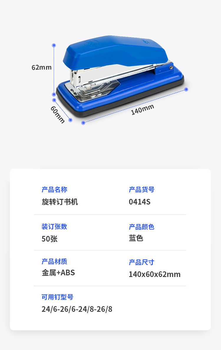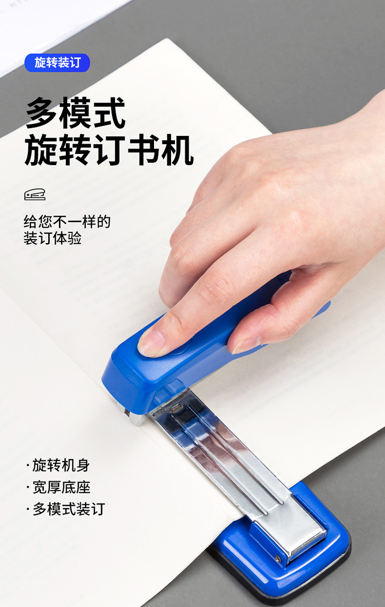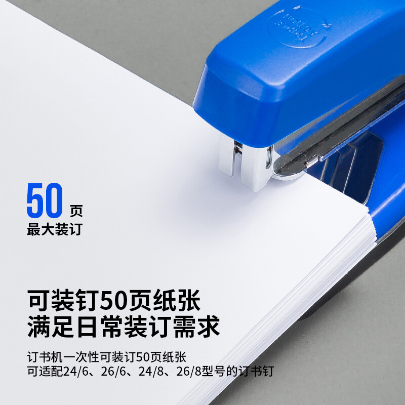 得力(deli)12#50頁旋轉(zhuǎn)式訂書機(jī) 厚層訂書器 中縫裝訂 臨時裝訂可拆 辦公用品 藍(lán)色0414S