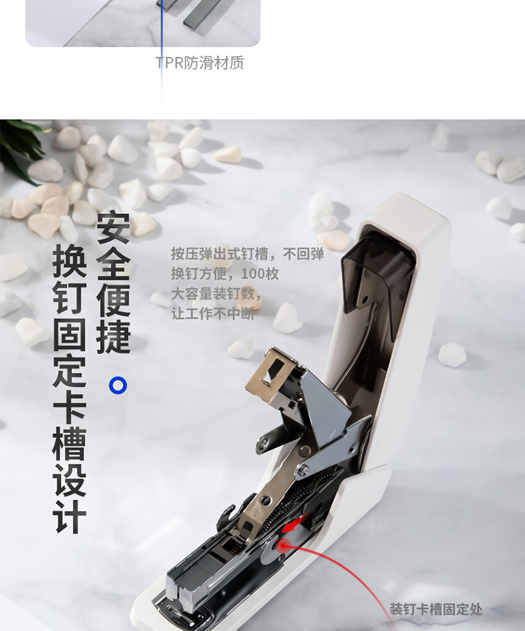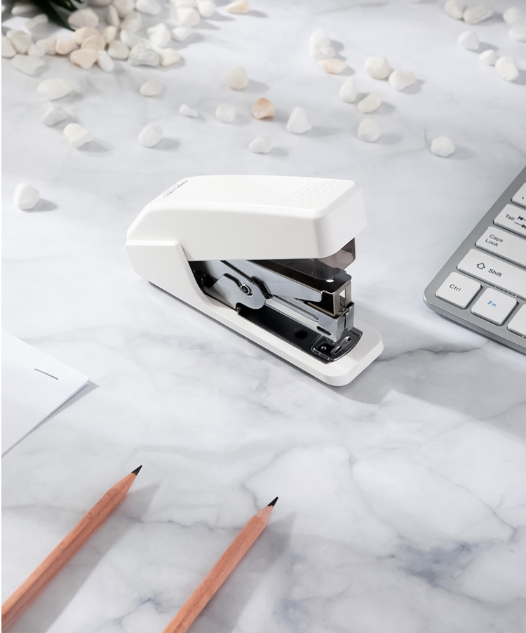 得力(deli)單指按壓省力訂書機(jī)/訂書器 適配12#訂書釘 可裝100枚釘 白色0467