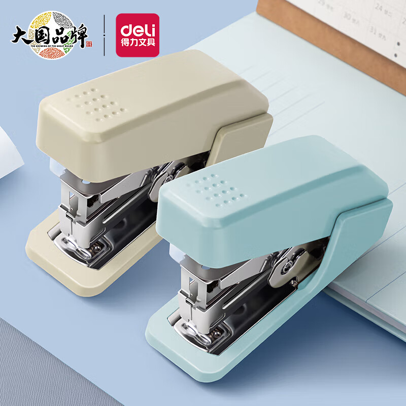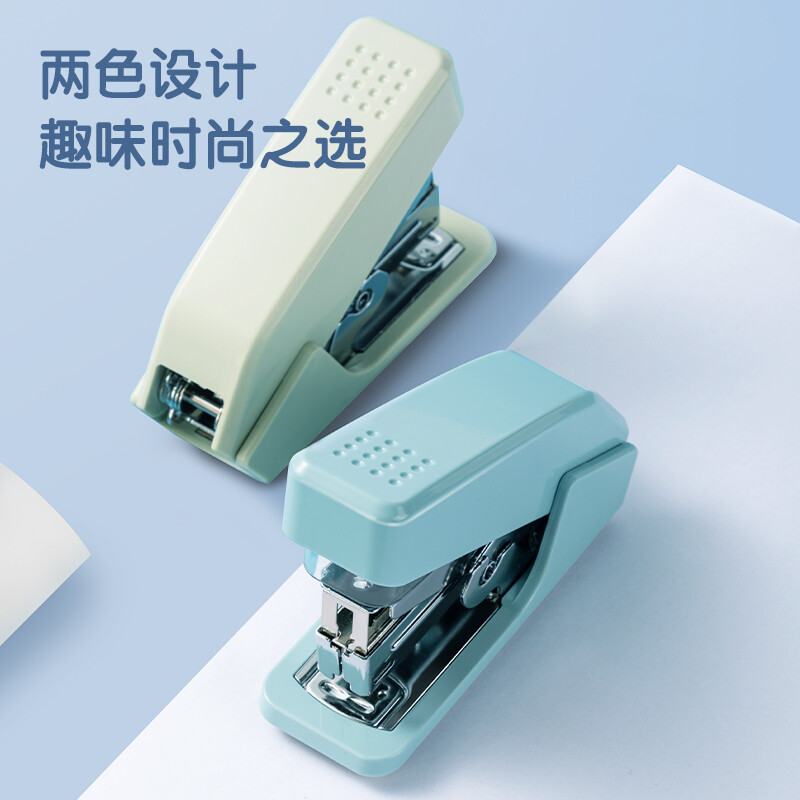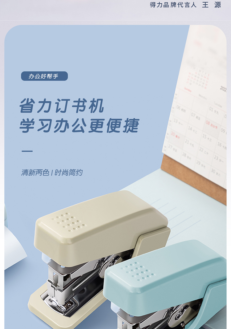 得力(deli)因?yàn)橛鲆娔闶×π√?hào)訂書機(jī) 王源推薦款 輕巧便攜省力訂書機(jī)/裝訂器/訂書器 綠 0460F