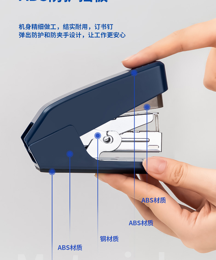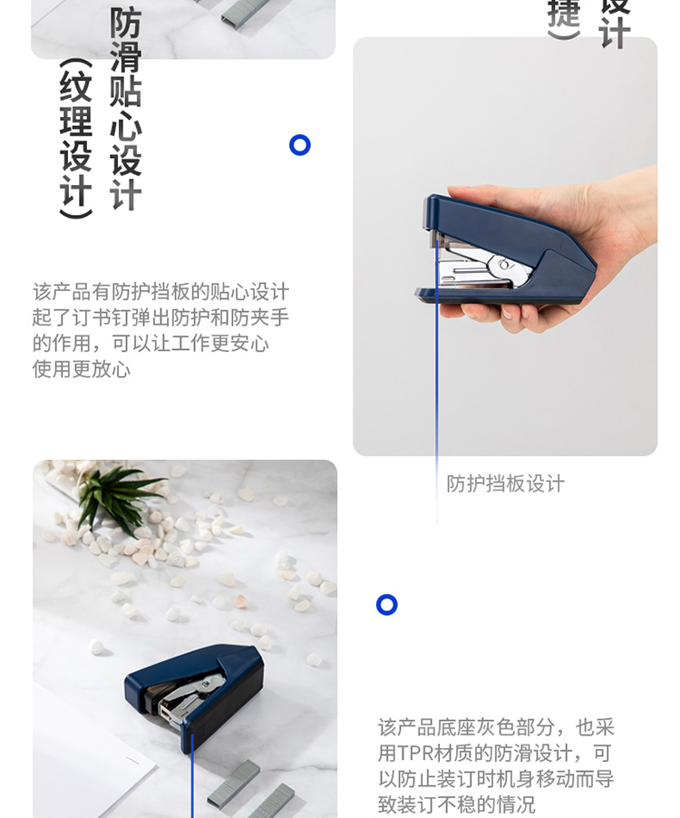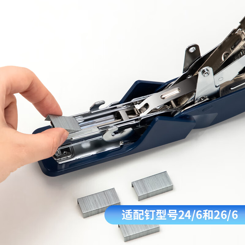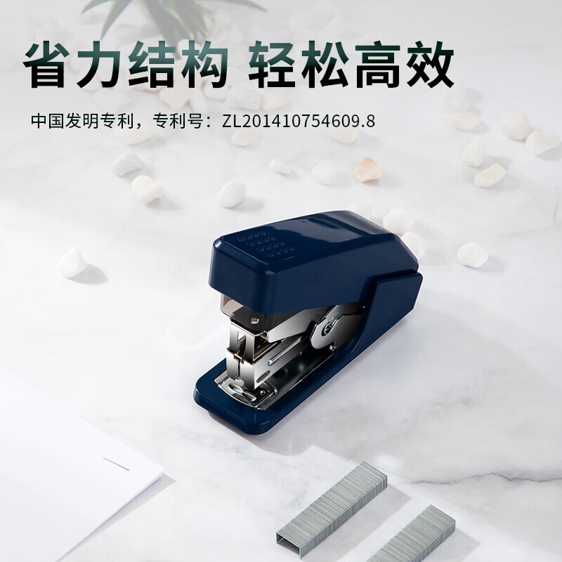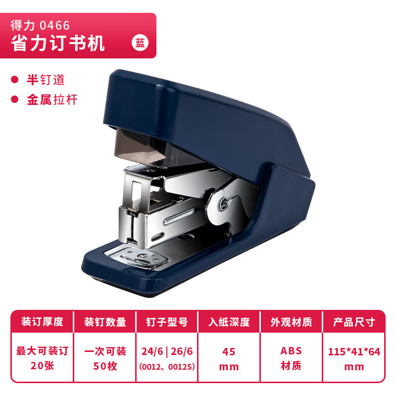 得力(deli)單指按壓省力訂書機(jī)/裝訂器/訂書器 一指按壓 適配12#釘 可裝50枚釘 藍(lán)色0466