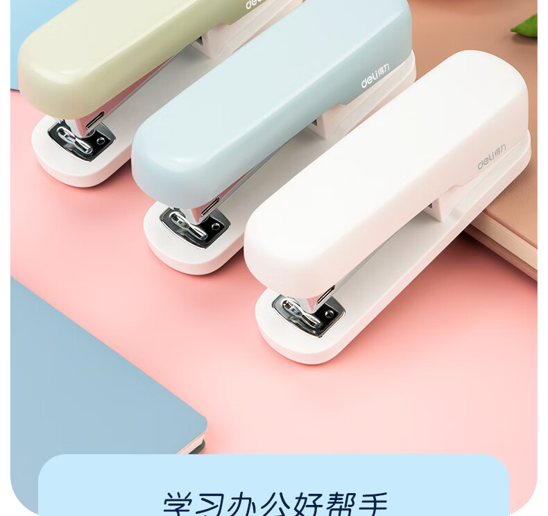 得力(deli)12#學(xué)生辦公訂書機(jī) 馬卡龍色 適配24/6或26/6訂書釘 淺綠色 TA301-A