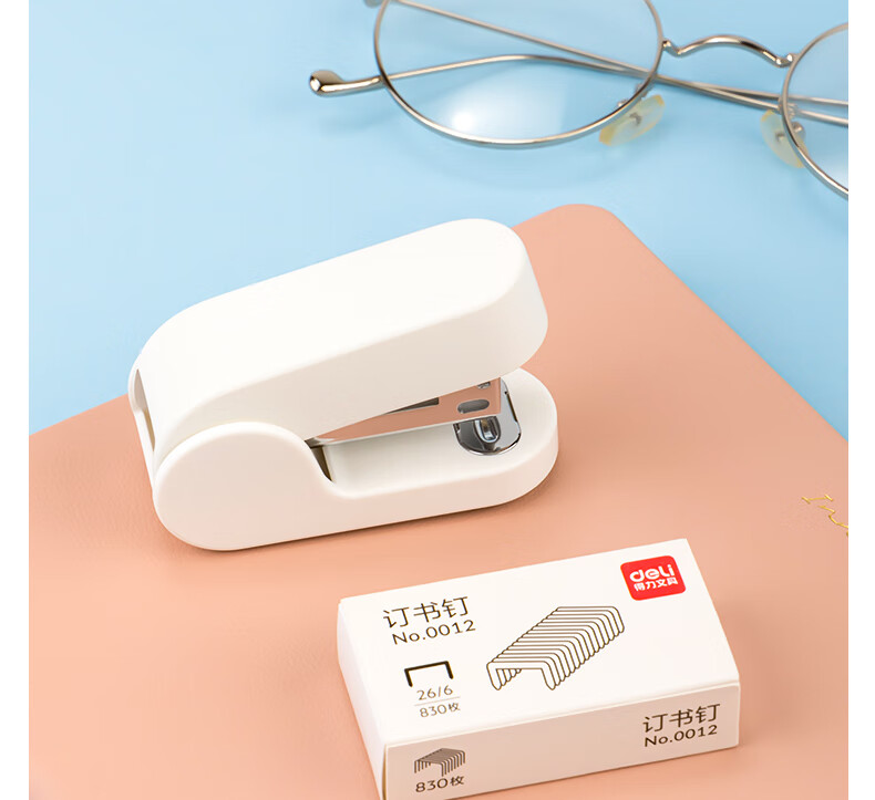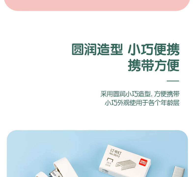 得力(deli) 迷你小號(hào)訂書機(jī) 學(xué)生辦公輕巧便攜 馬卡龍色訂書機(jī)/裝訂器/訂書器 白 TA201