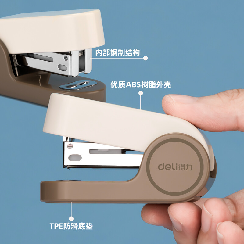 得力(deli) 迷你小號(hào)訂書機(jī) 學(xué)生辦公輕巧便攜 馬卡龍色訂書機(jī)/裝訂器/訂書器 棕 TA201