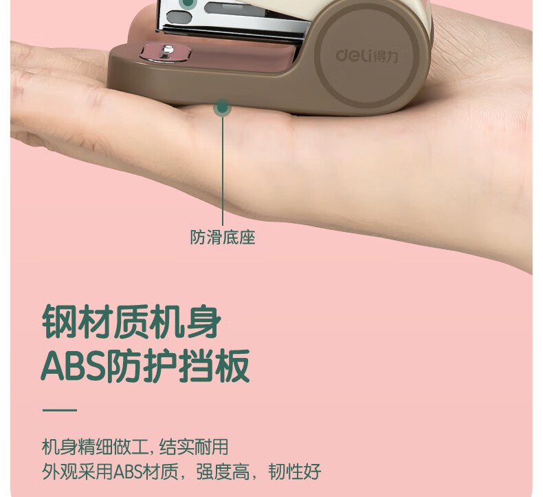 > 辦公文具 > 桌面文具 > 訂書機(jī) > 得力(deli) 迷你小號(hào)訂書機(jī) 學(xué)生辦公輕巧便攜 馬卡龍色訂書機(jī)/裝訂器/訂書器 棕 TA201