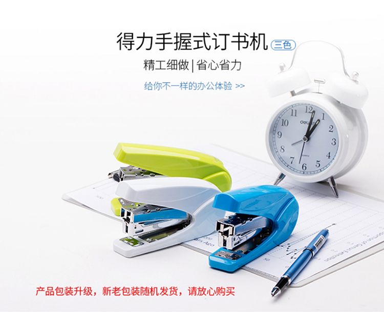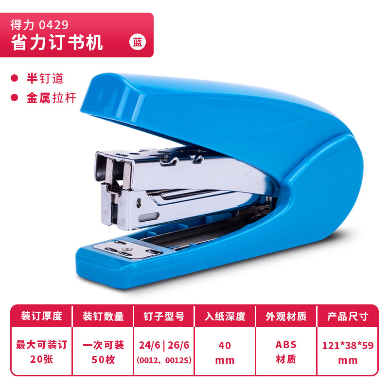 得力(deli)時尚炫彩型省力訂書機(jī)/訂書器 可訂20頁 適配12#訂書釘 藍(lán)色