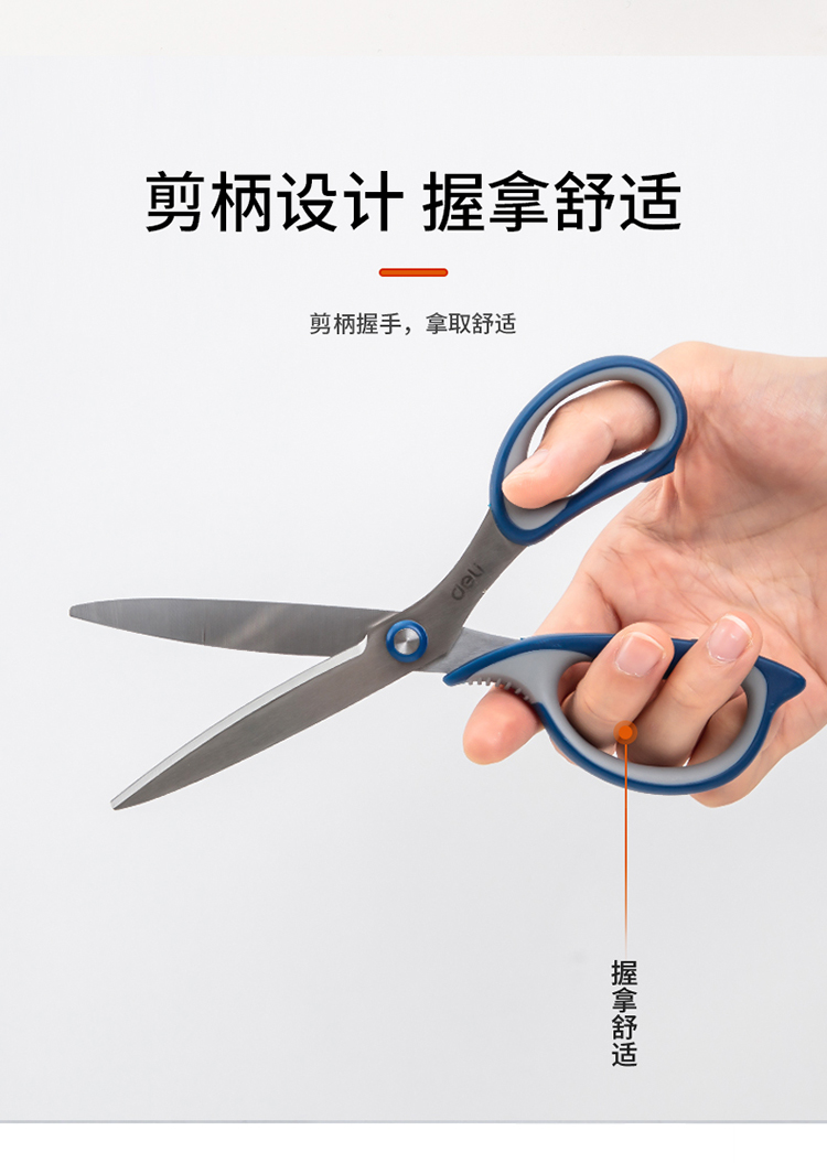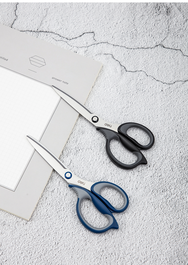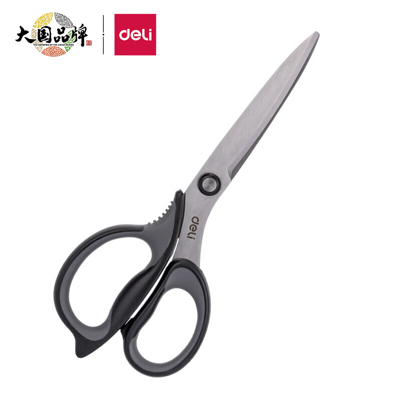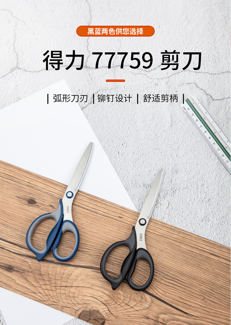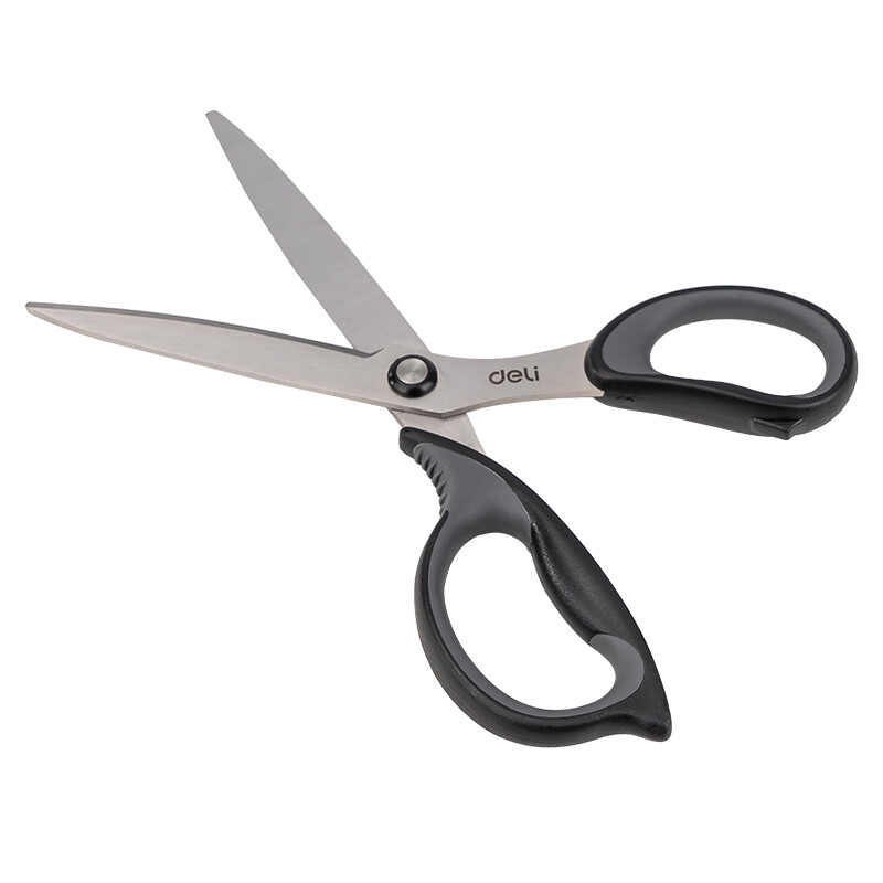 得力(deli)175mm中號(hào)辦公家用剪刀 弧形剪片省力剪刀 黑色77759