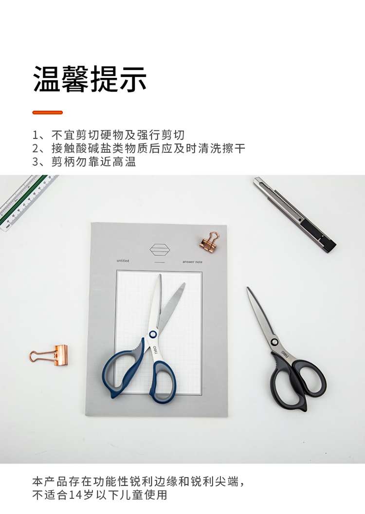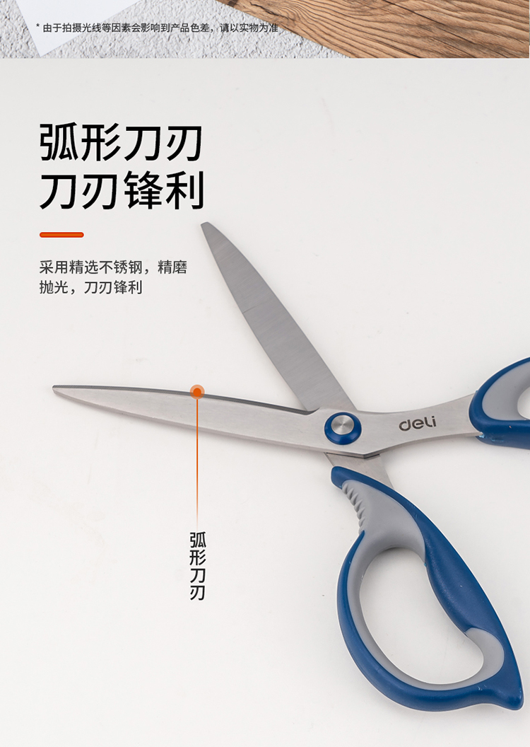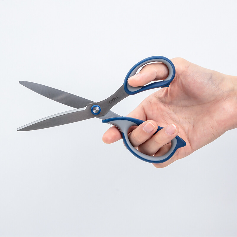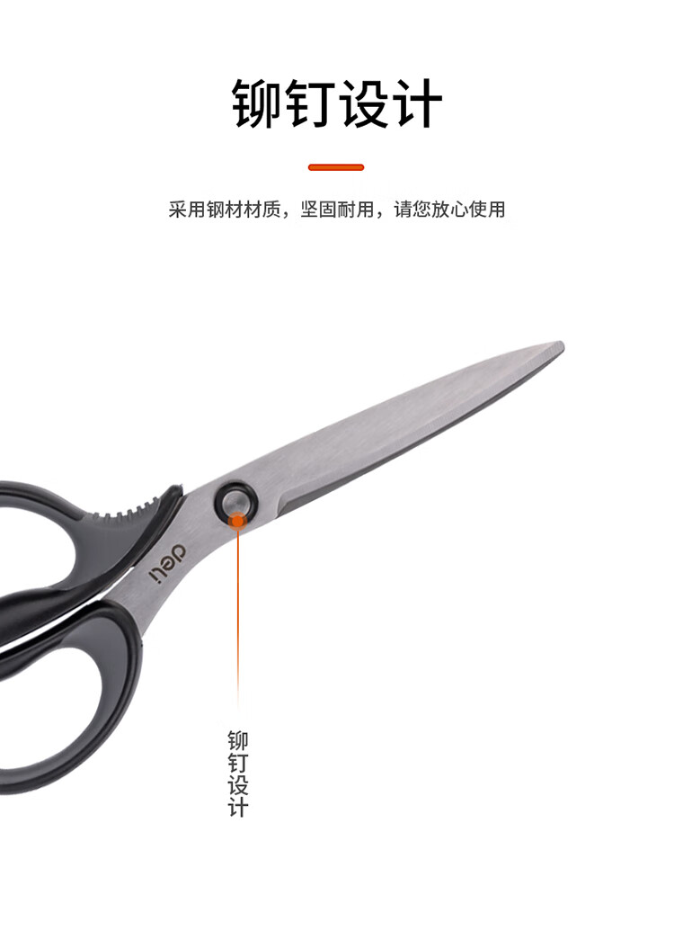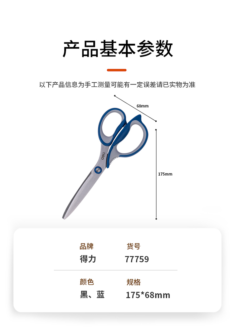 得力(deli)175mm中號(hào)辦公家用剪刀 弧形剪片省力剪刀 黑色77759