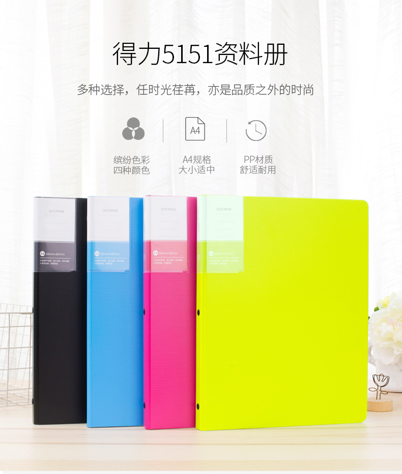 得力(deli) A4活頁(yè)資料冊(cè) 彩色插頁(yè)袋 孕檢資料冊(cè) 辦公用品 顏色隨機(jī) 單個(gè)裝 【紐賽款】60頁(yè) 深灰色