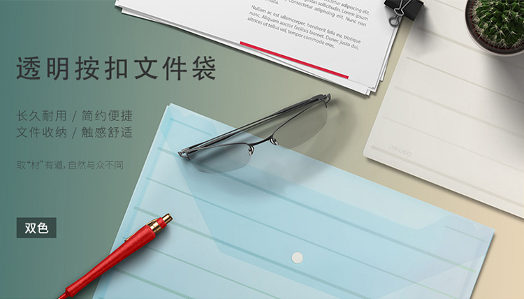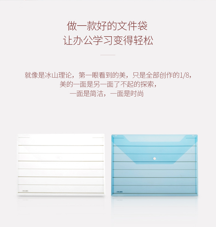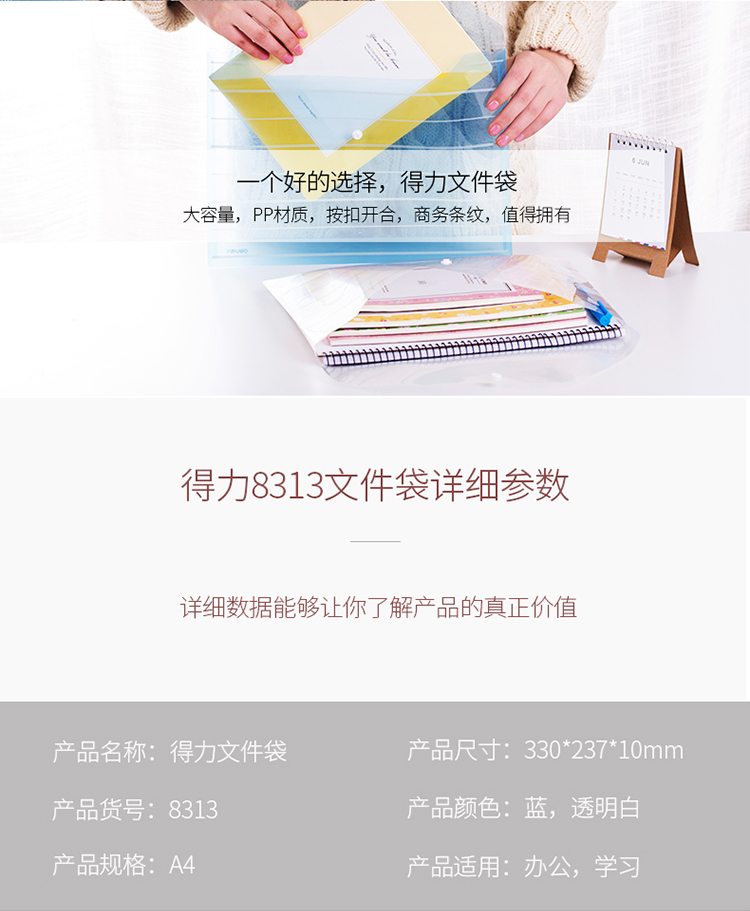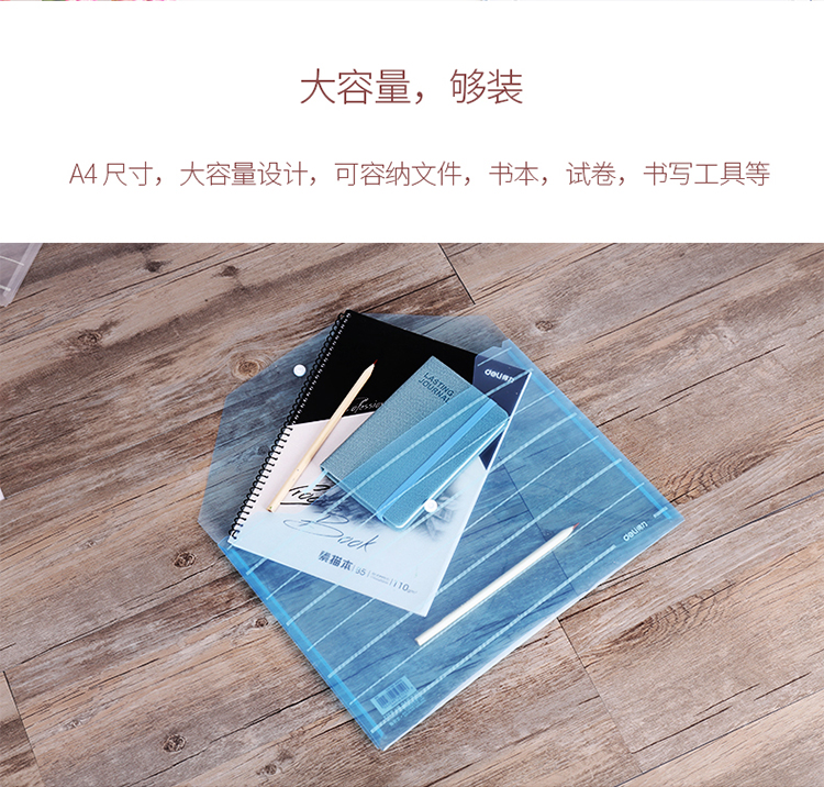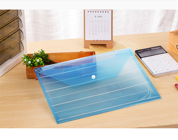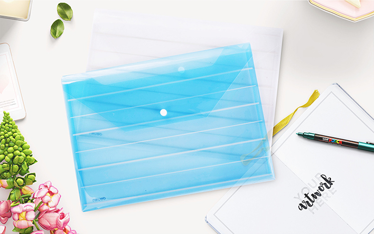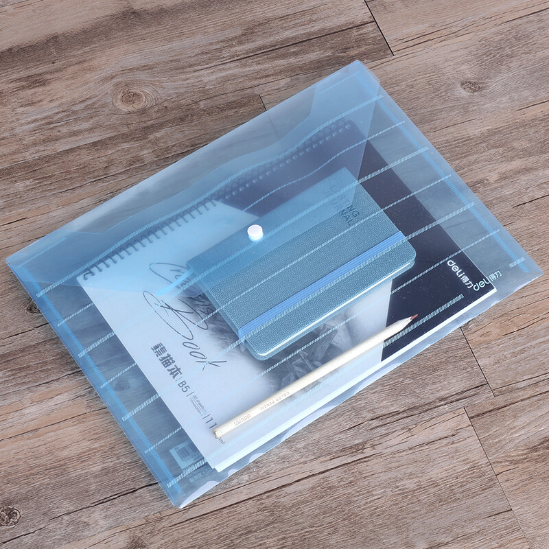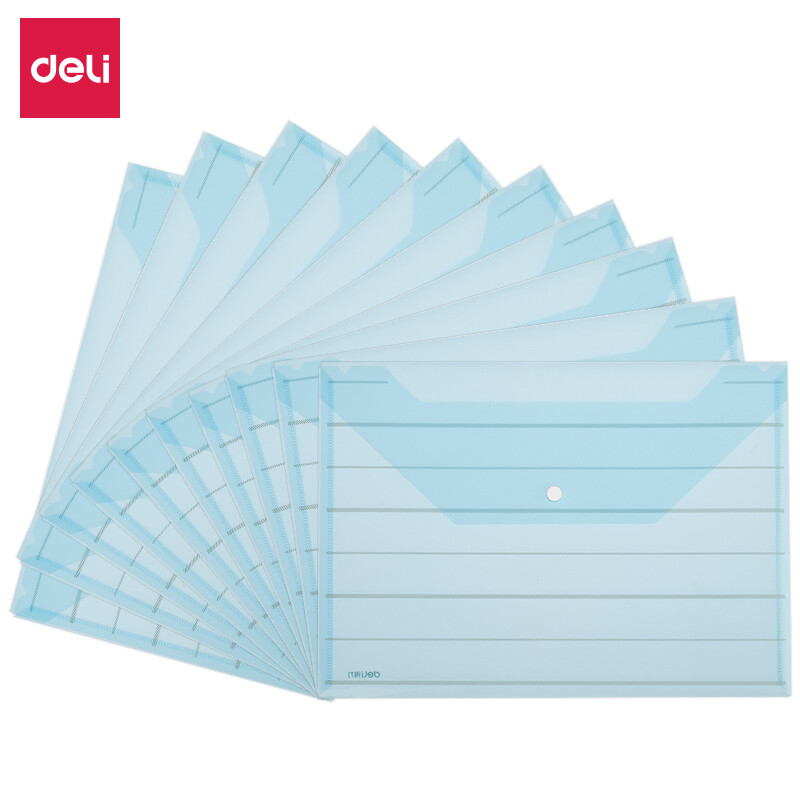得力(deli)10只A4條紋透明文件袋 按扣資料袋 塑料檔案袋文件保護(hù)票據(jù)試卷收納袋 8313藍(lán)色