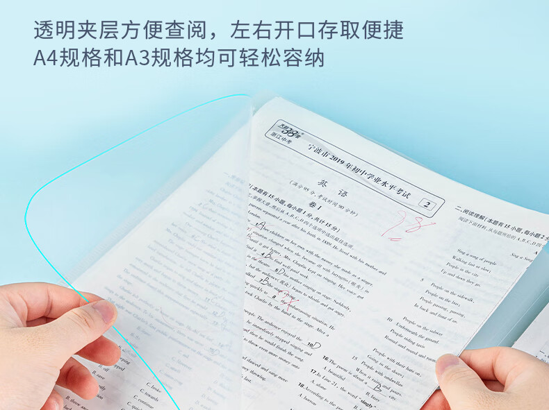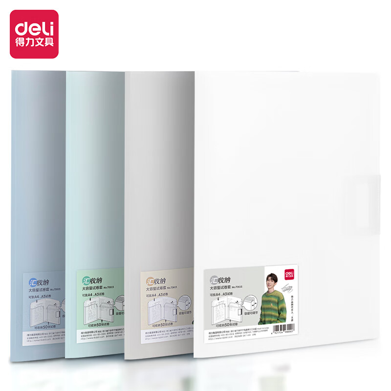 得力(deli)A4試卷文件套 連中三元加厚加寬大容量資料袋文件快遞袋票據(jù)學(xué)生試卷收納72615白