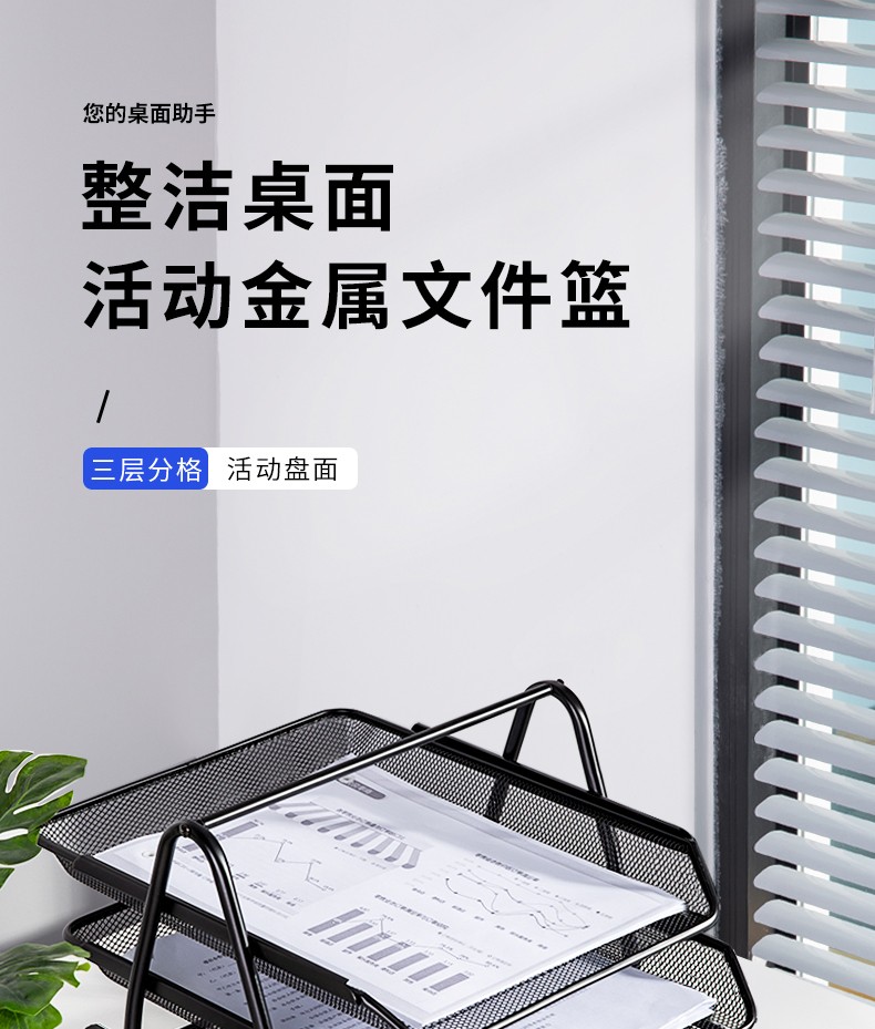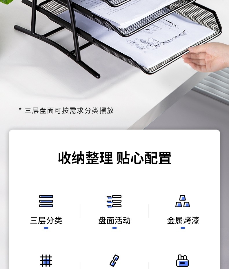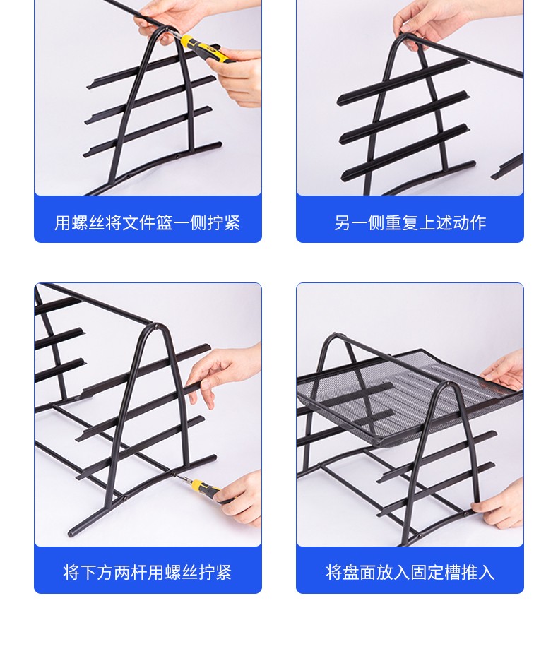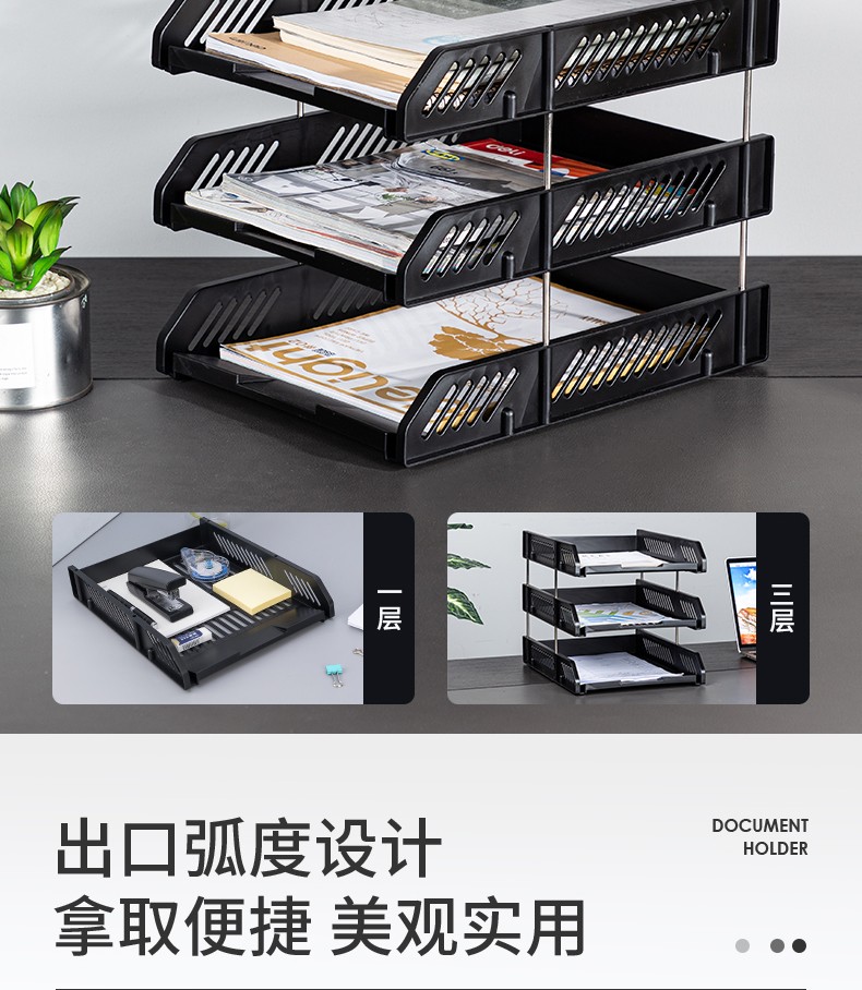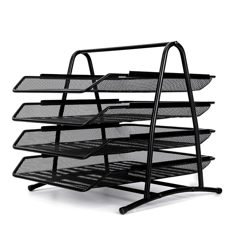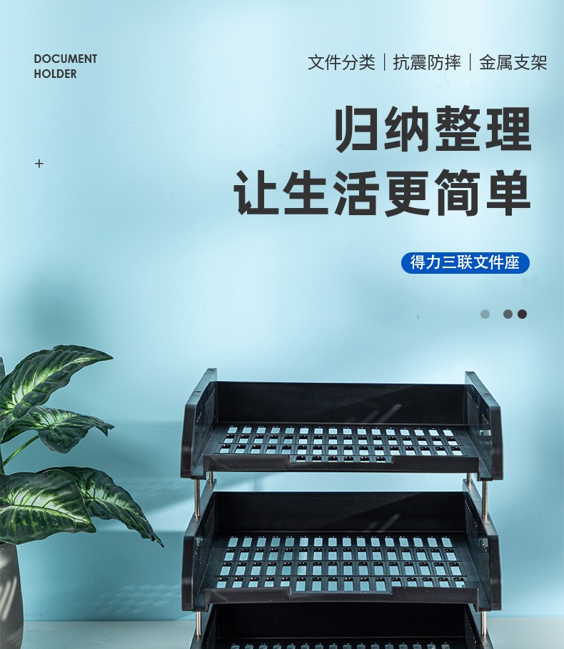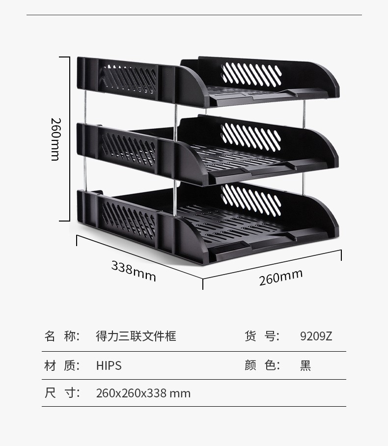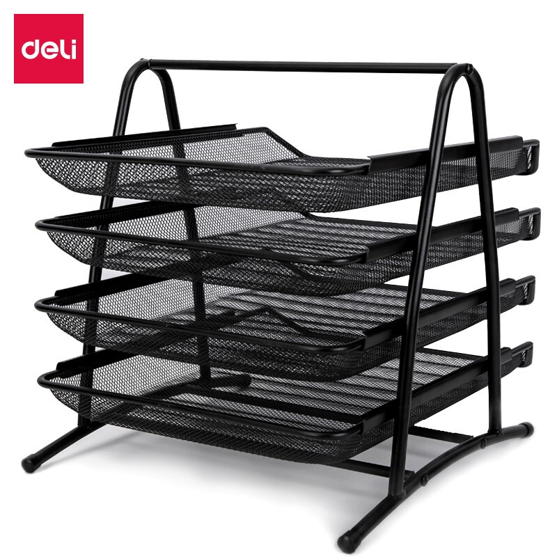 得力(deli) 三層鏤空收納文件座 自由拆卸組裝三層文件盤/文件框/文件架 牢固耐用 9184 四層金屬黑