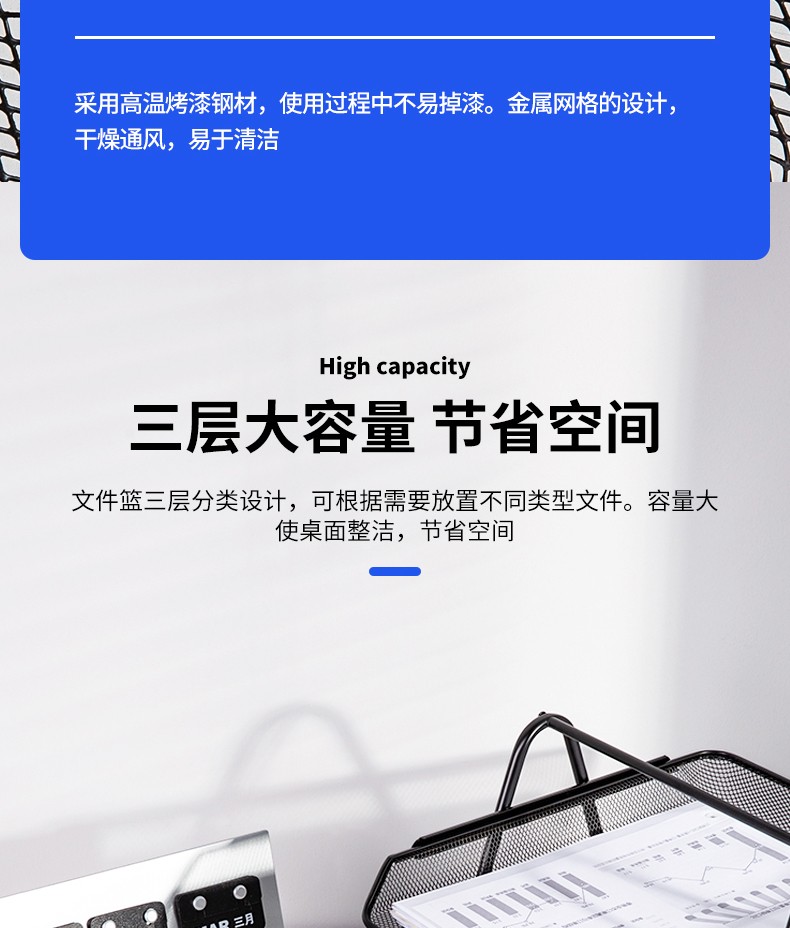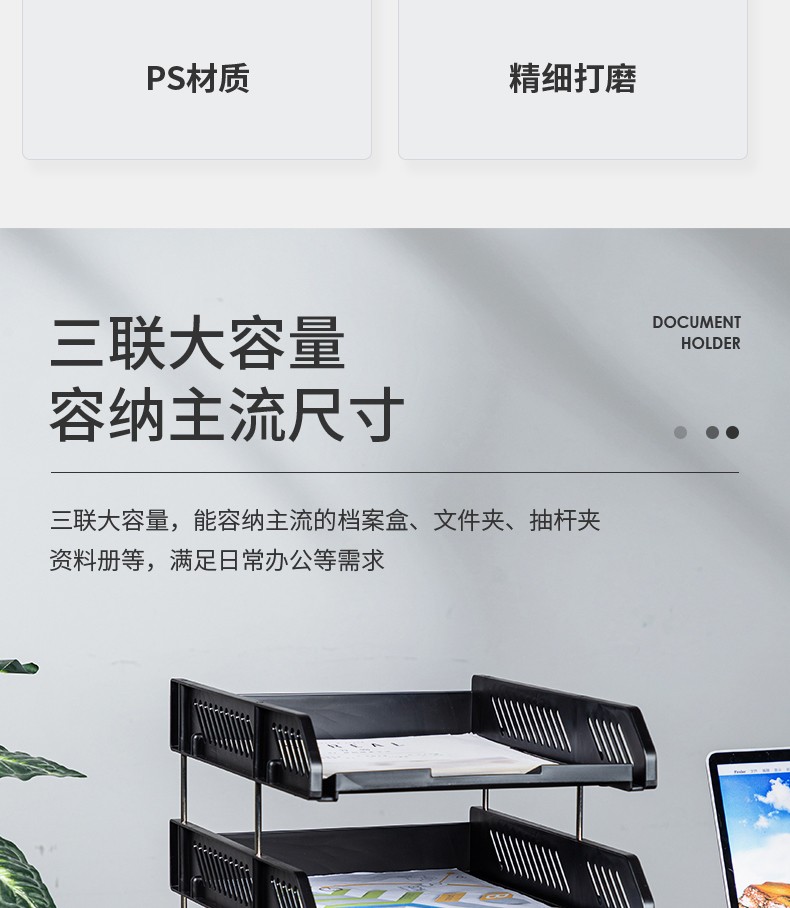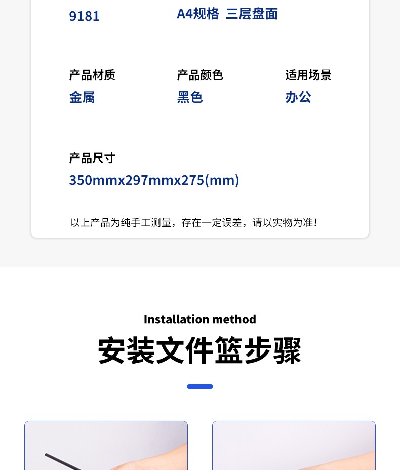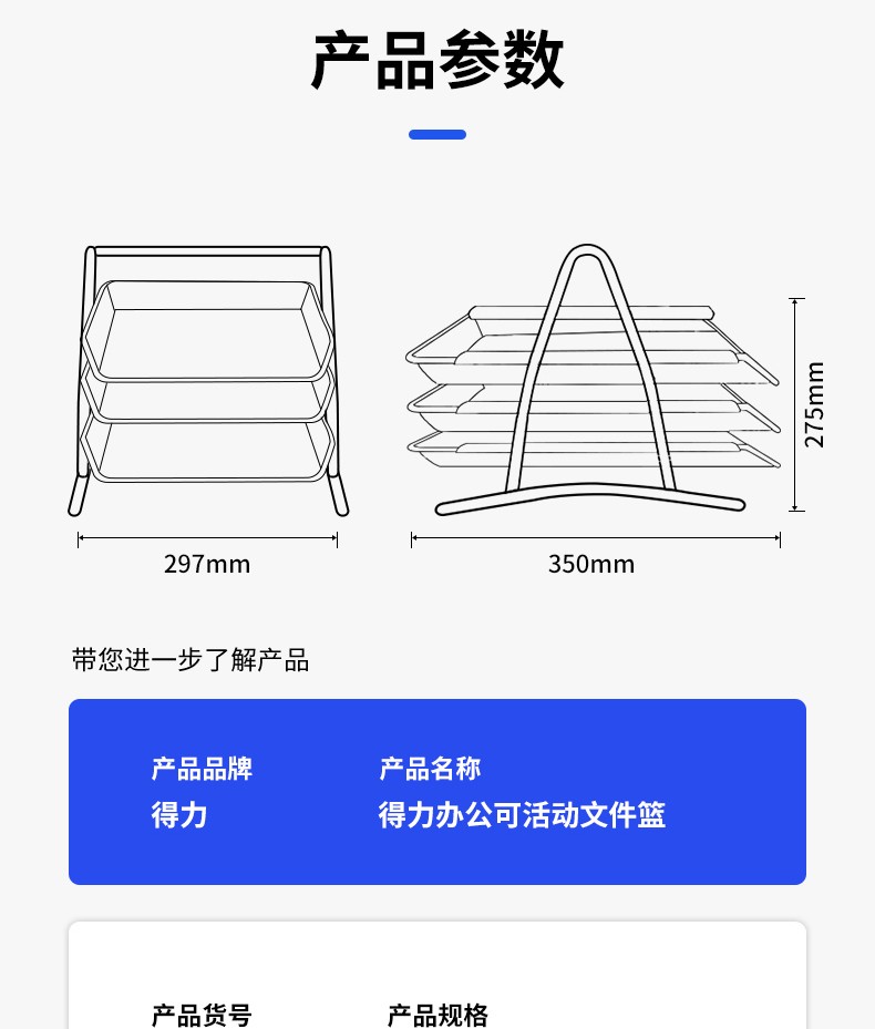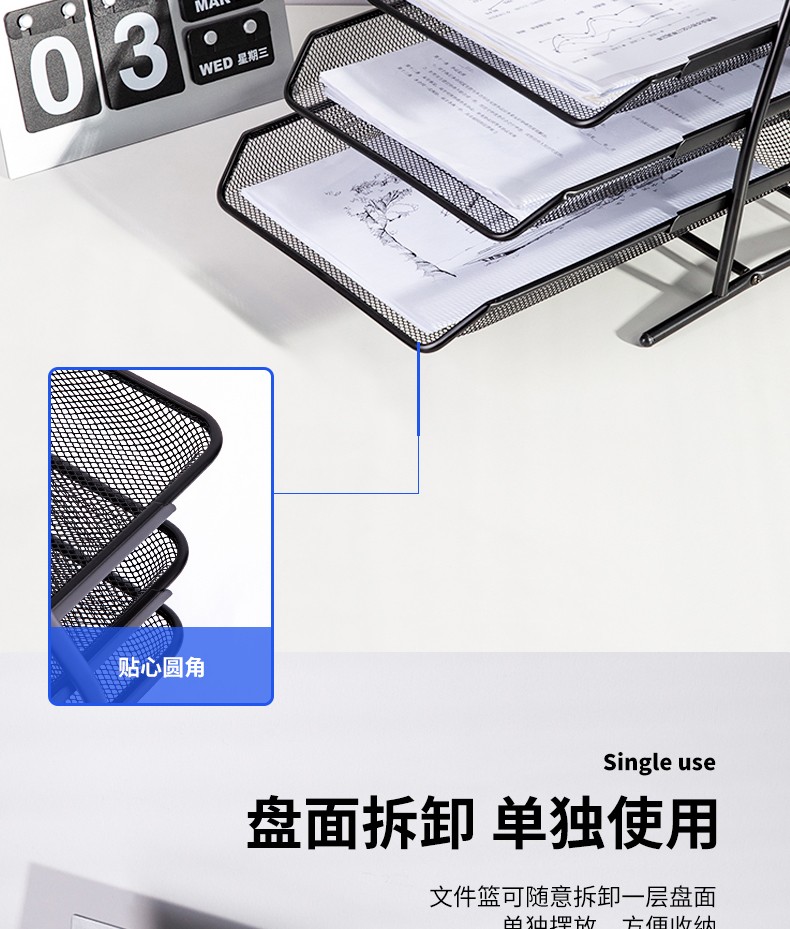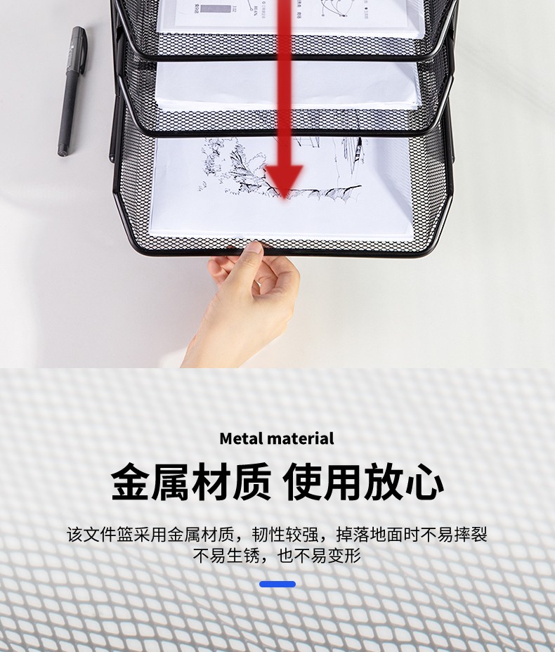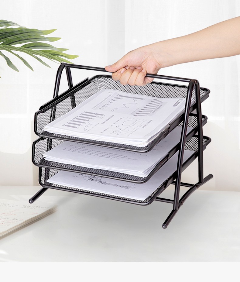 得力(deli) 三層鏤空收納文件座 自由拆卸組裝三層文件盤/文件框/文件架 牢固耐用 9184 四層金屬黑