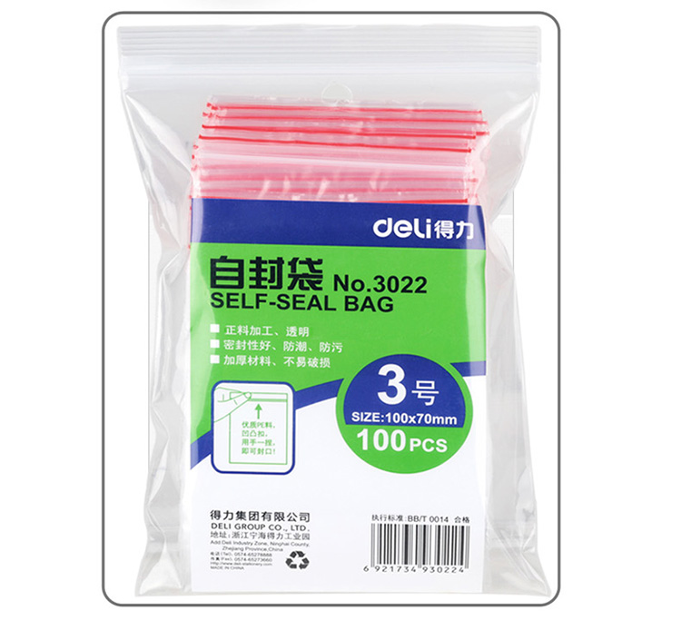 得力(deli)10#自封袋密封袋塑料型收納十號袋3029(340mm*236mm)