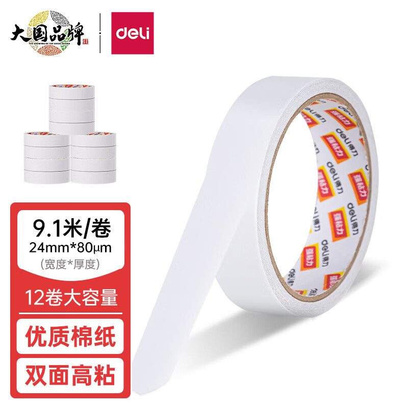 首頁 > 辦公文具 > 粘膠用品 > 文具膠帶 > 得力(deli)高粘性棉紙雙面膠帶 24mm*10y(9.1m/卷) 辦公用品 30403
