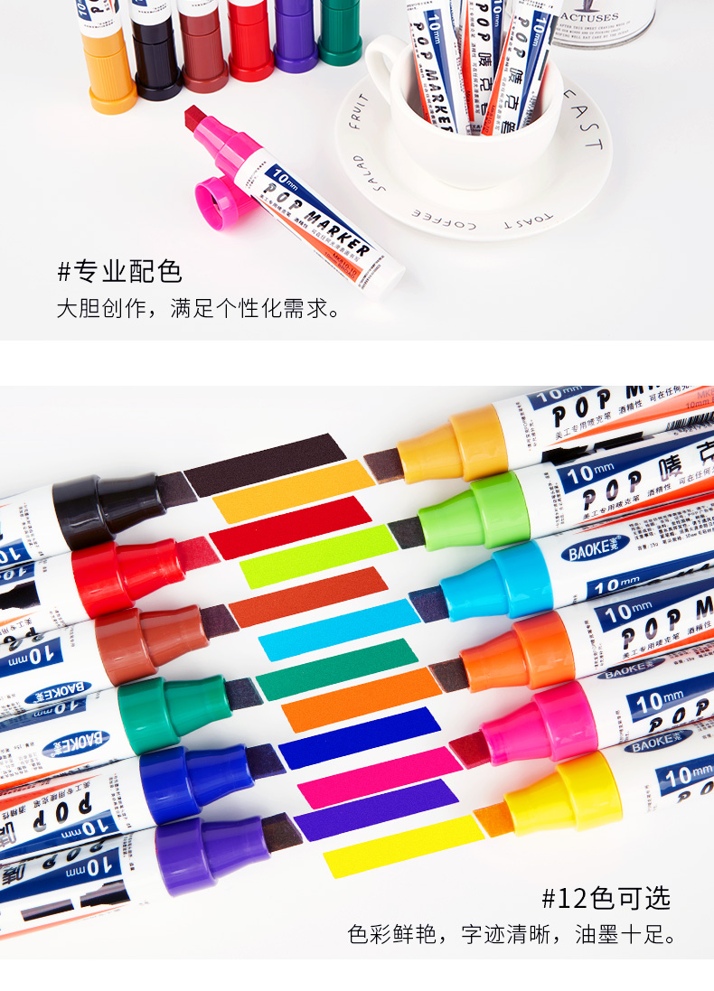 寶克(BAOKE)10mm POP筆嘜克筆馬克筆記號筆 橙色