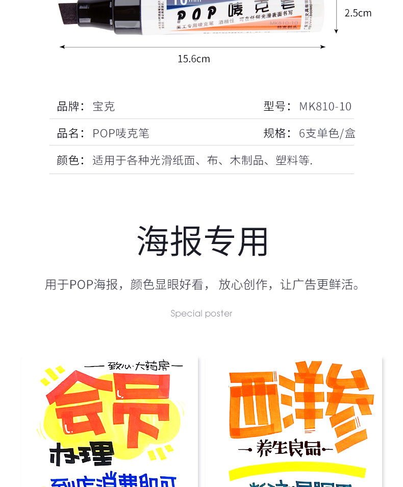 寶克(BAOKE)10mm POP筆嘜克筆馬克筆記號筆 粉色