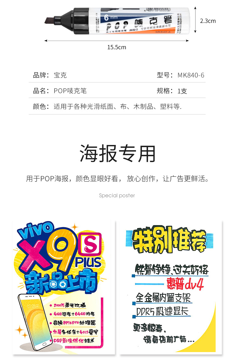 寶克6mm馬克筆POP嘜克筆記號(hào)筆 淺綠色mk860-6