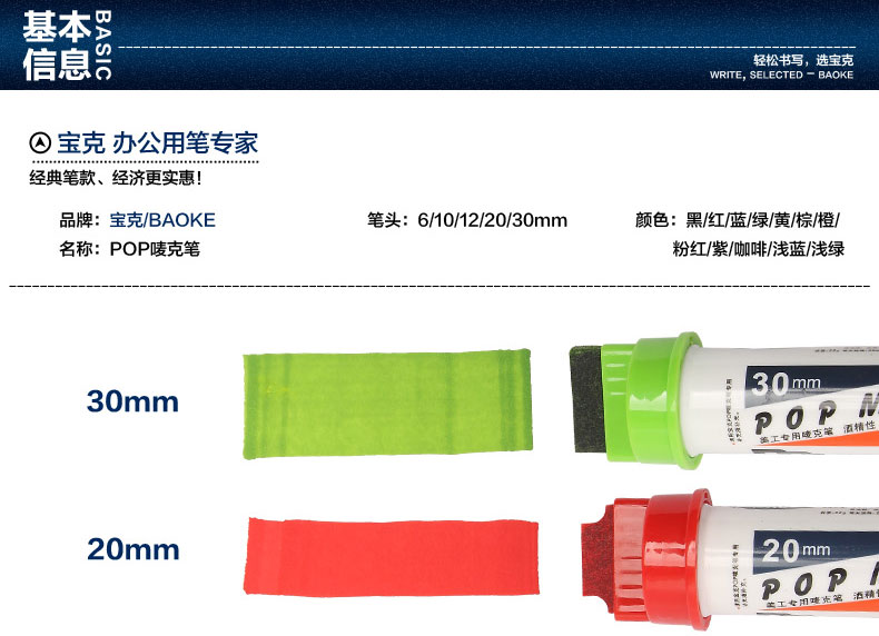寶克(BAOKE)pop筆12mm馬克筆記號筆 黃色