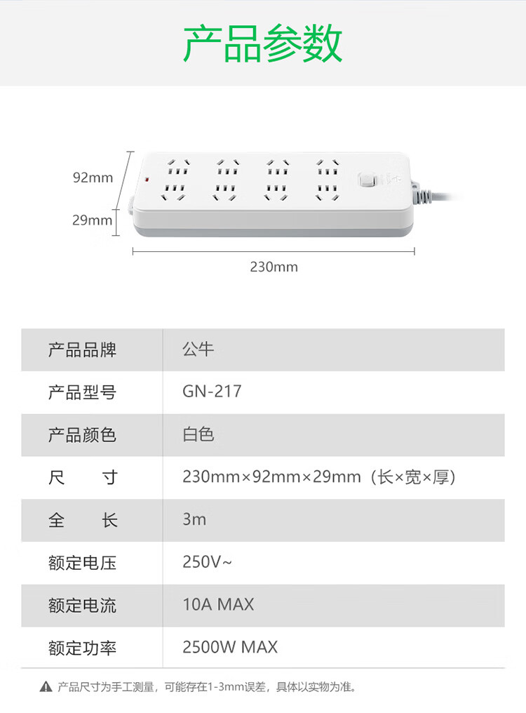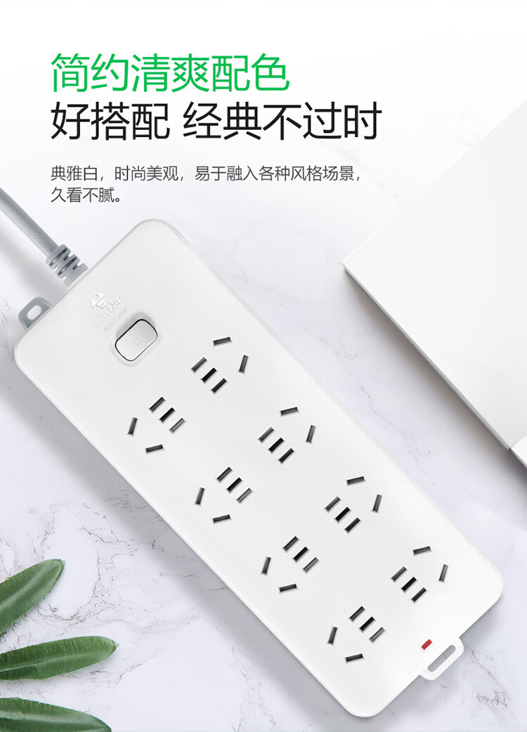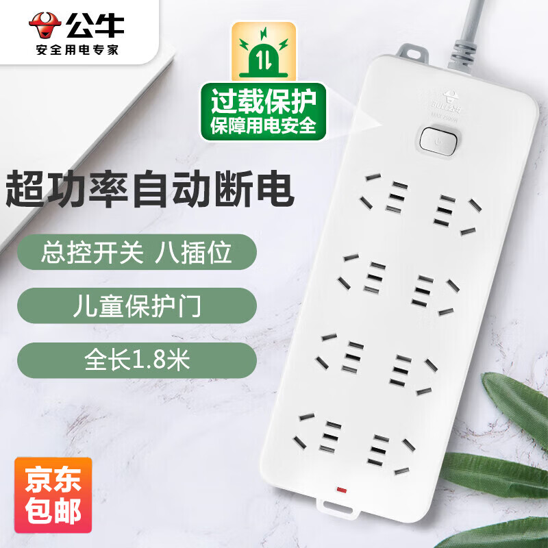公牛(BULL)GN-217 插座/接線(xiàn)板/拖線(xiàn)板 8位總控全長(zhǎng)1.8米