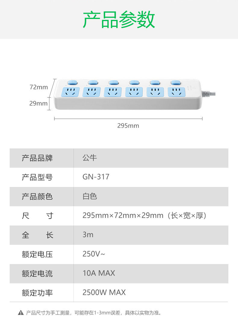 公牛(BULL)新國(guó)標(biāo)插座/接線板/拖線板 6位分控全長(zhǎng)3米 GN-317