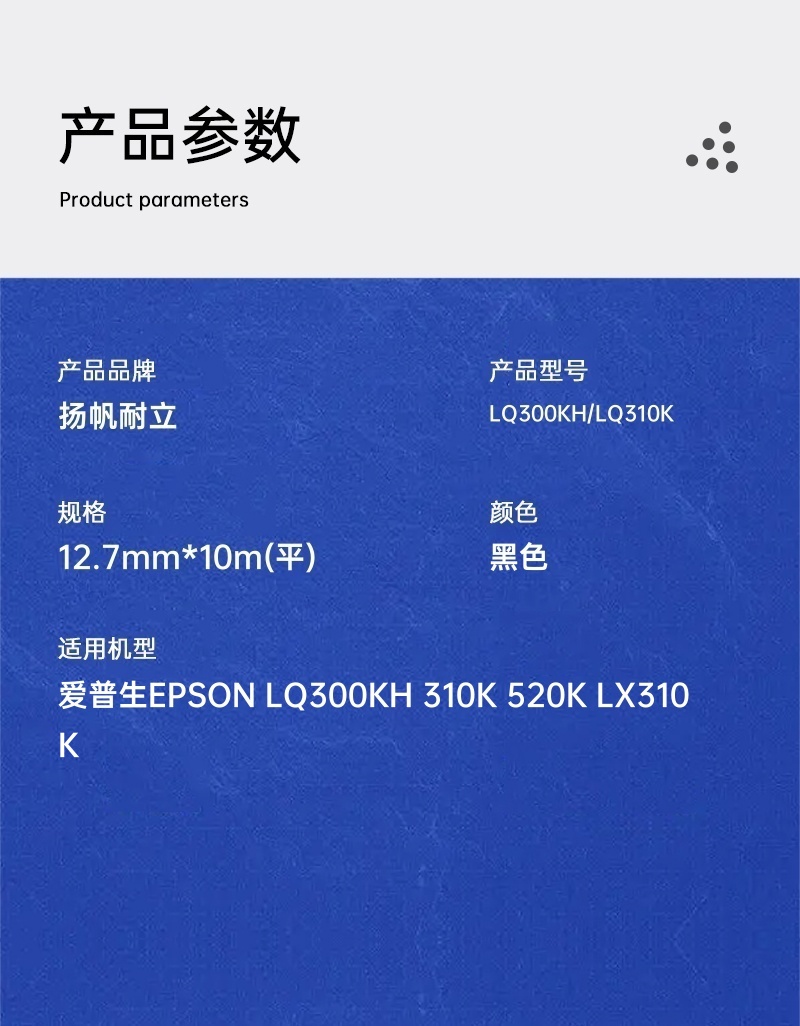 > 辦公耗材 > 針式打印機(jī)耗材 > 通用色帶框 > 揚(yáng)帆耐立 LQ300KH/LQ310K 色帶架 黑色 12.7mm*10m(平)單支裝(適用愛(ài)普生EPSON LQ300KH 310K 520K LX310K)揚(yáng)帆耐立 LQ300KH/LQ310K 色帶架 黑色 12.7mm*10m(平)單支裝(適用愛(ài)普生EPSON LQ300KH 310K 520K LX310K)