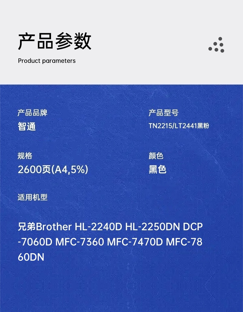 智通 TN2215/LT2441 粉盒 黑色 2600頁(A4,5%)單支裝(適用兄弟Brother HL-2240D HL-2250DN DCP-7060D MFC-7360)